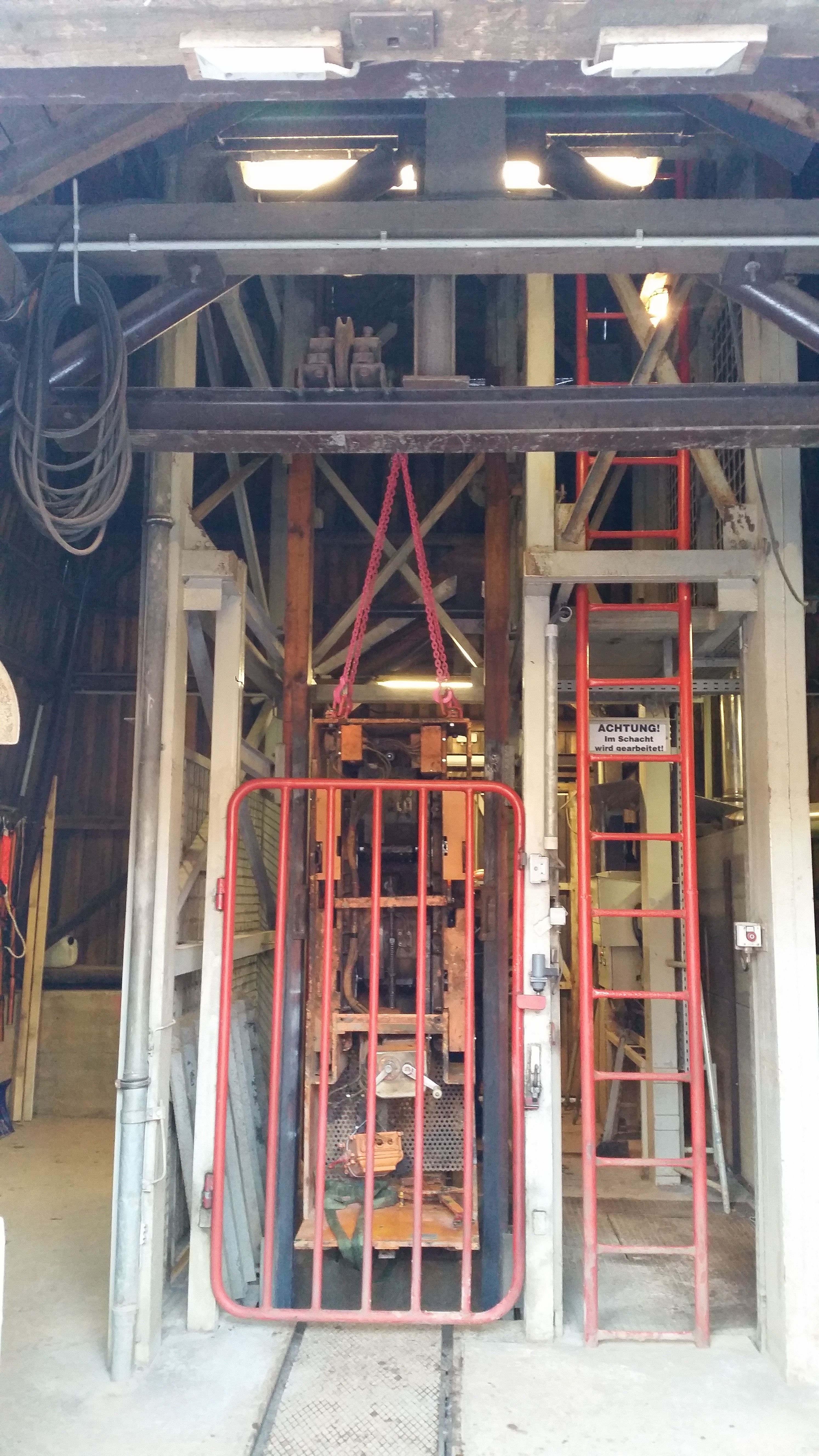Hängebank des Zentralschachtes der Grube Einheit bei Elbingerode/Harz (Stand: 2015)