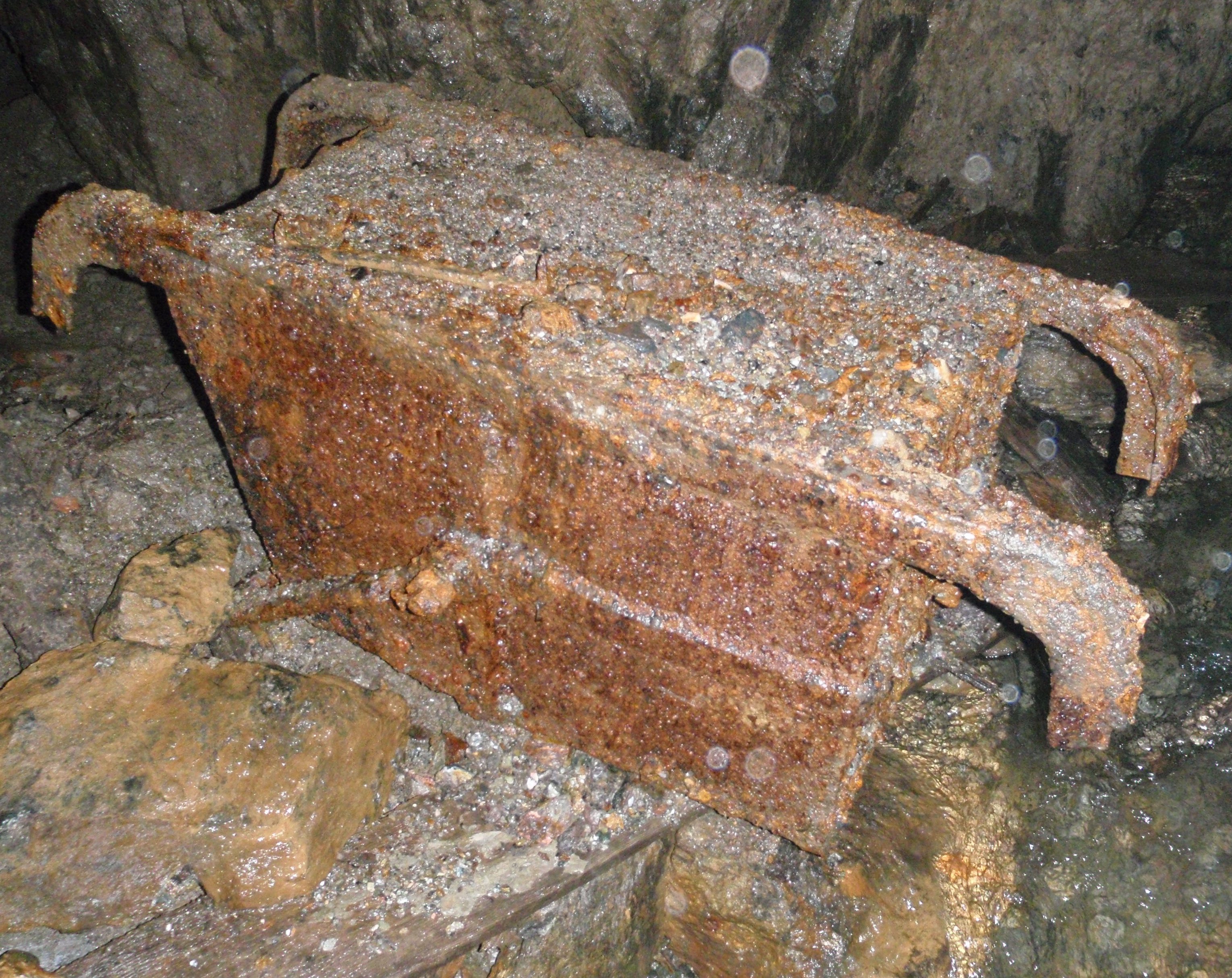 Auf den Fotos ein individueller Förderkübel 0,4 cbm für die Förderung in regionalen tonnlägigen Schürfen/Schächten mit Gleitbahnzimmerung aus der Anfangszeit der Wismut von 1949. Leider ist der Quenzel (Haltebügel) nicht mehr erhalten. Ich weiß nicht, wie der ausgesehen haben könnte (Stabeisen, Winkeleisen, geschweißt, geschmiedet, ... ). Ihn gilt es zu rekonstruieren. Hat jemand von euch Tipps?