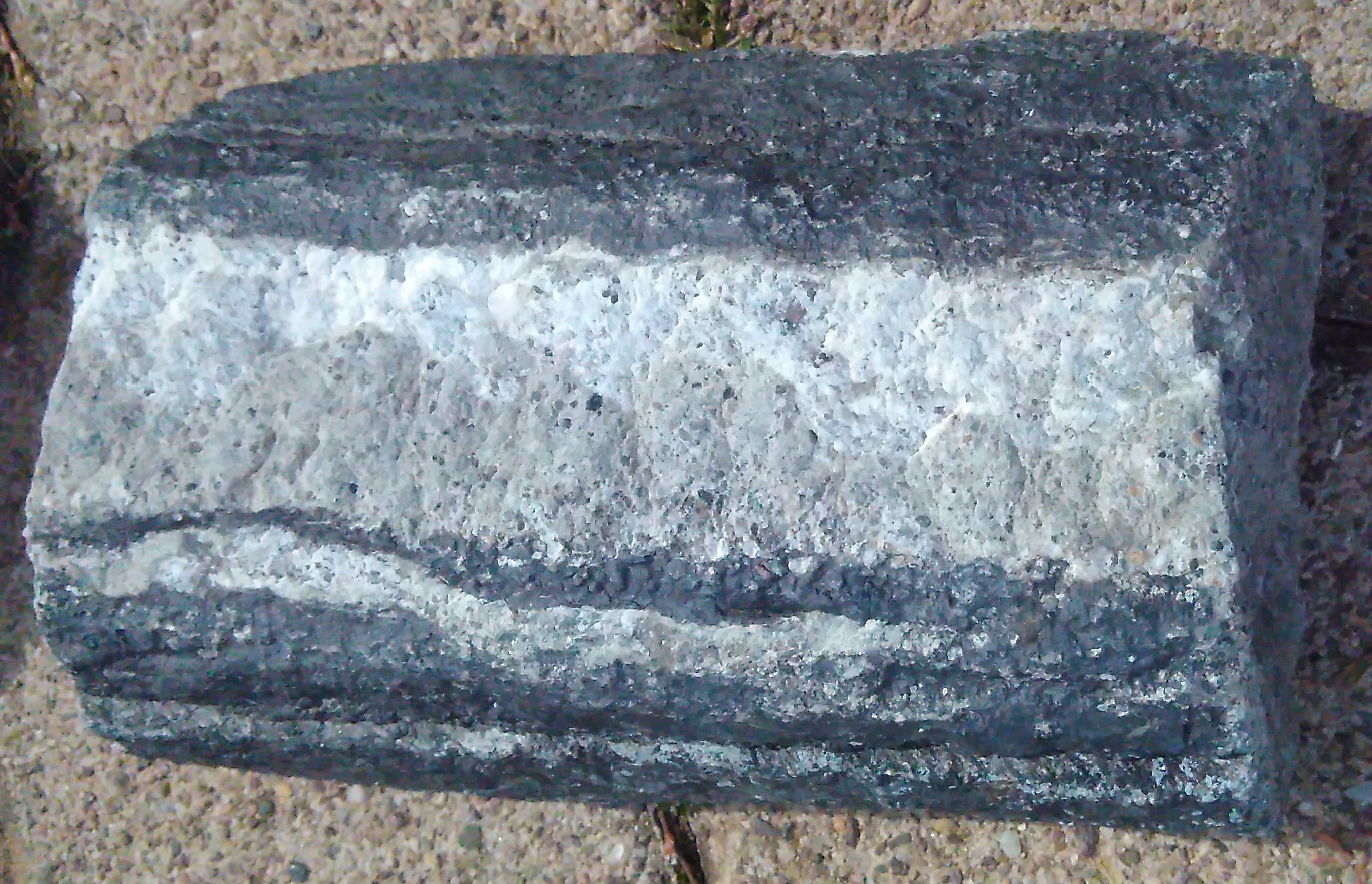 Ein ca. 25 cm langes Stück weist auch keine andere Struktur auf. Der helle Bereich besteht aus Sand gröberer Körnung.