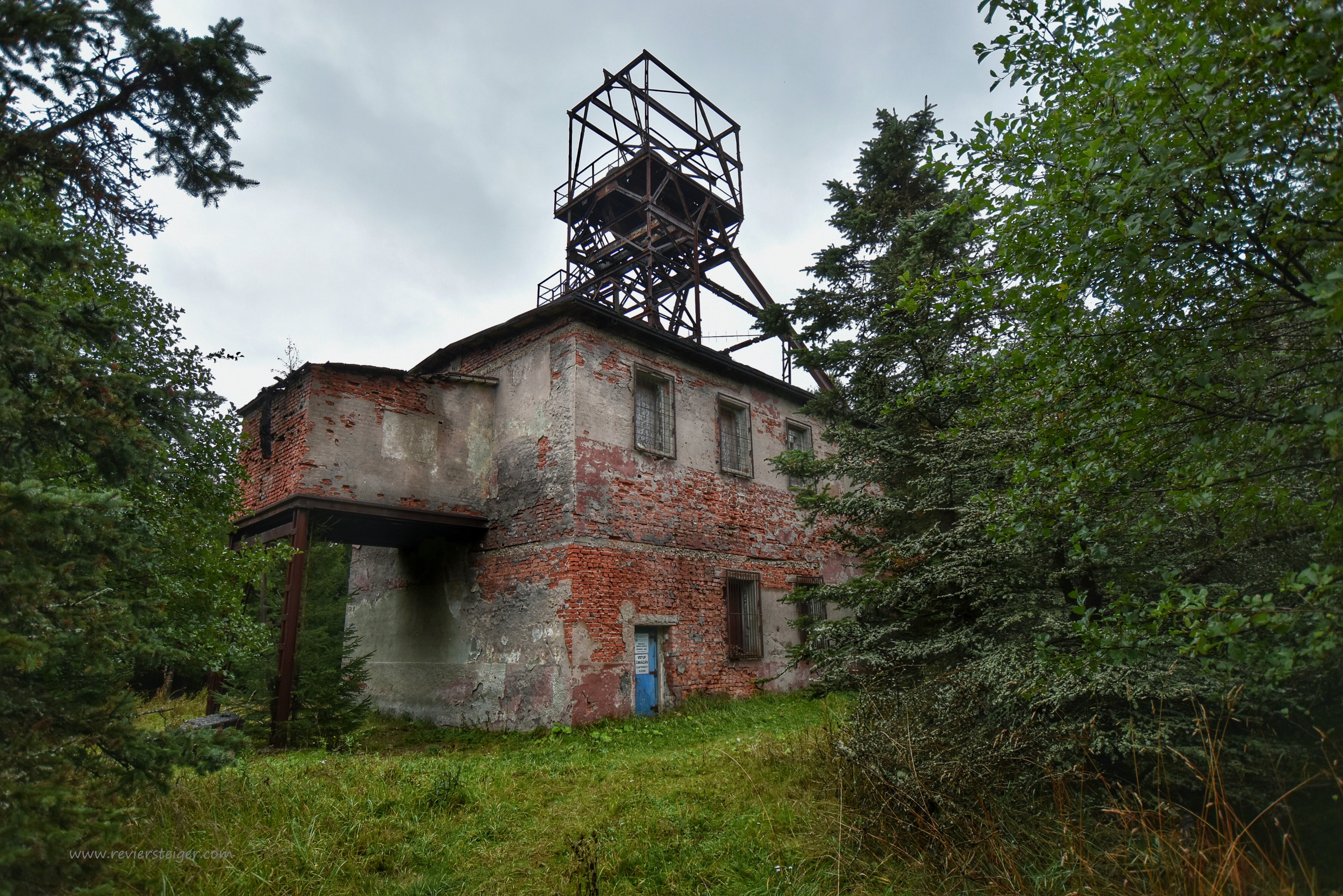 Medingschacht der Grube Silbernaal in der Nähe von Clausthal. Das abendliche Gegenlicht verdeckt den bedauernswerten Erhaltungszustand.
