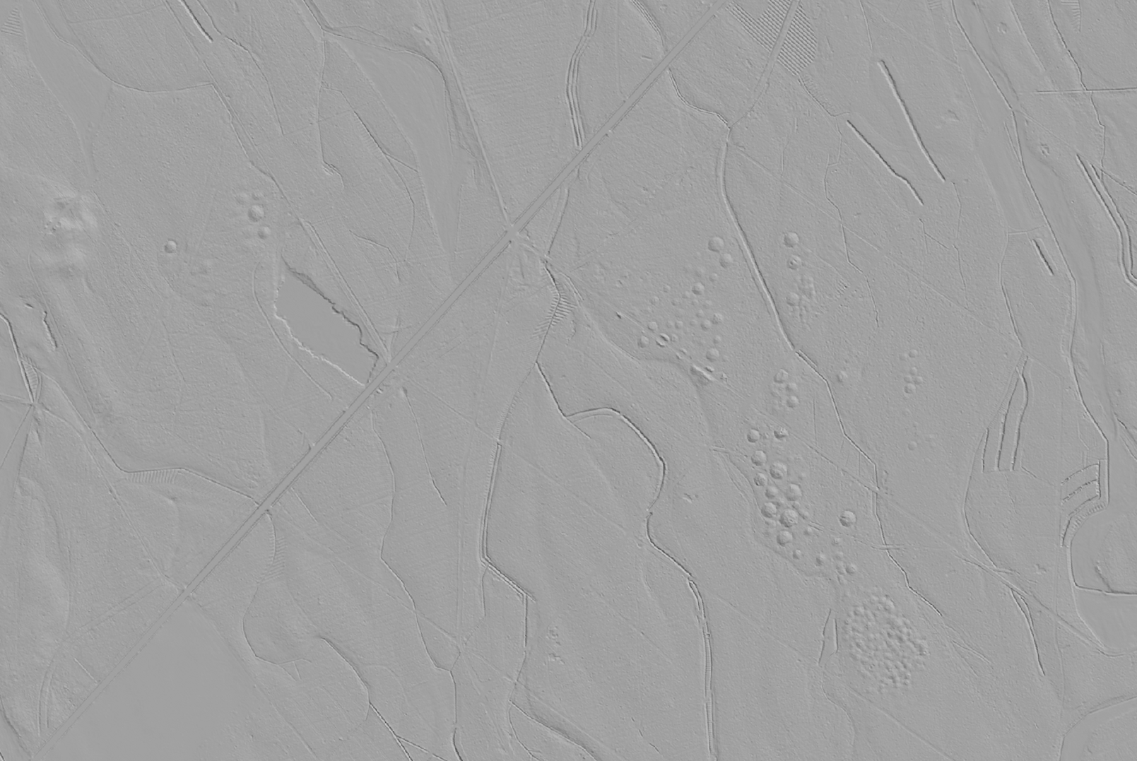 Sorry für den Doppelpost, hier mein Versuch, den Sandberg zu lokalisieren und die Strukturen, die im DGM zu erkennen sind, zu erklären. Gleich vorweg, die folgenden Punkte stützen sich nur auf das DGM und die Georeferenzierung alter Landkarten. Um die Richtigkeit zu überprüfen, ist auf jeden Fall eine Geländebegehung erforderlich.