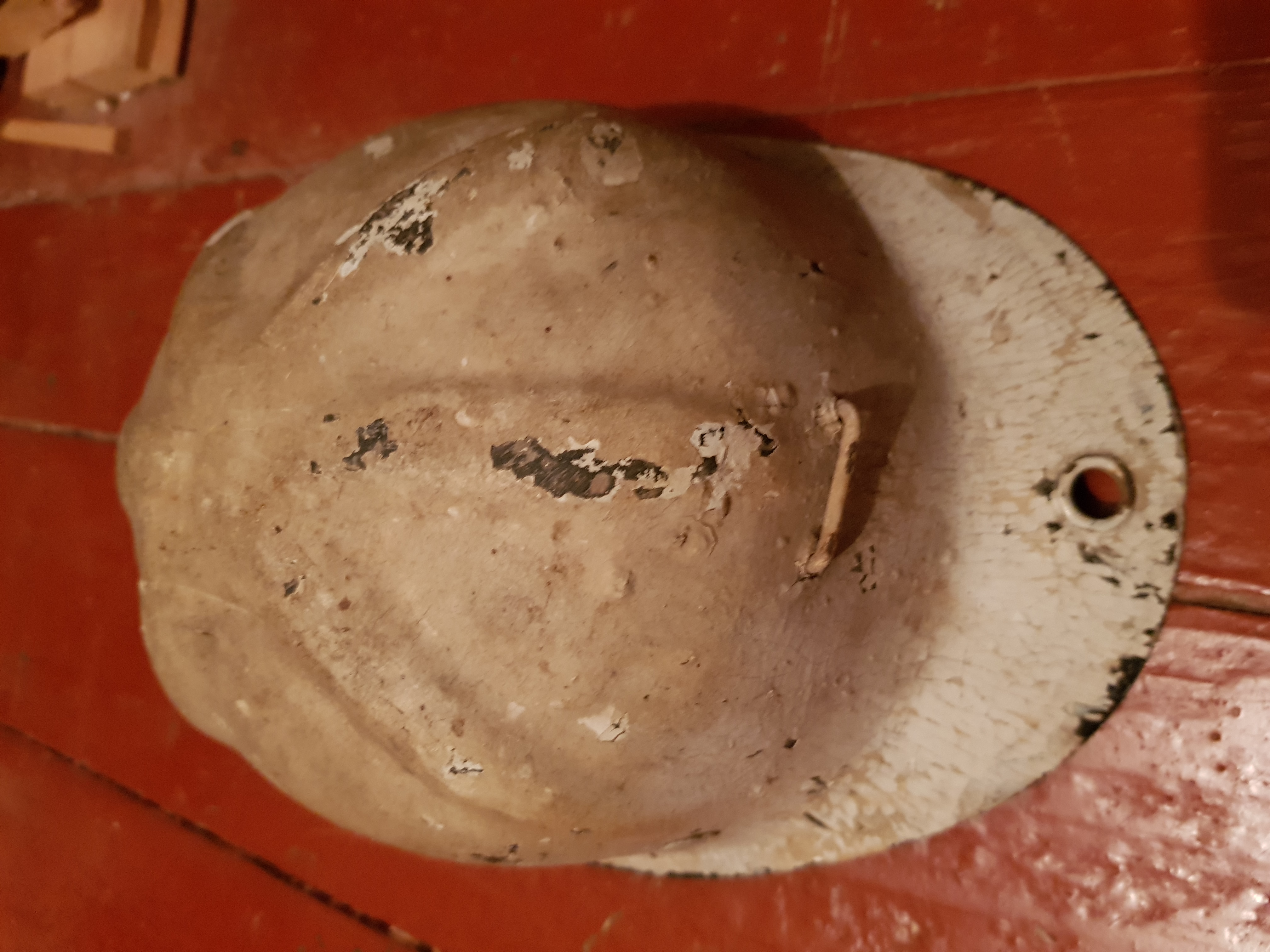 Stimmt. Solche Lüftungslöcher hatten die Magnesiumhelme. Der Helm gatte auch noch keine Vorrichtung für ein Geleucht. Diesen selbst angebrachten Drahtbügel kenne ich nun wieder von den Stabihelmen.