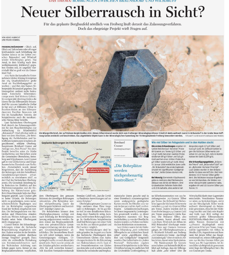 Rouyn-Noranda - Globex Mining Enterprises Inc. (GMX - Toronto Stock Exchange, G1MN - Frankfurt, Stuttgart, Berlin, München, Tradegate, Lang & Schwarz Stock Exchanges und GLBXF - OTCQX International) freut sich, zu berichten, dass Excellon Resources Inc. (TSX: EXN; EXN.WT, OTC: EXLLF und FWB: E4X1) (Excellon oder das Unternehmen) bekannt gegeben hat, dass der Bohrbetriebsplan für das Projekt Silver City in Sachsen (Deutschland) vom Bergamt des Freistaates Sachsen genehmigt wurde. Globex hat das Projekt Silver City in Sachsen in Option an Excellon vergeben. Excellon kann durch bestimmte Bar- und Aktienzahlungen eine Beteiligung von 100 % am Projekt erwerben; außerdem steht Globex eine GMR-Lizenzgebühr zu (Einzelheiten entnehmen Sie bitte der Pressemeldung vom 24. September 2019).