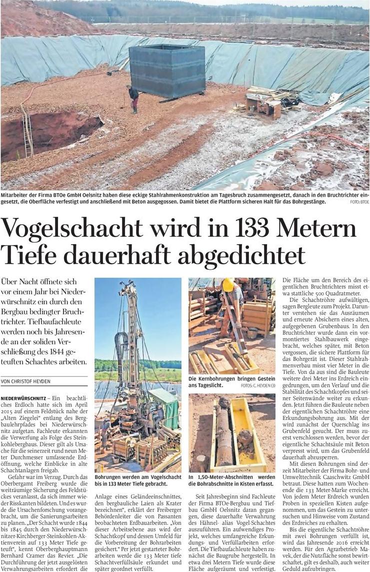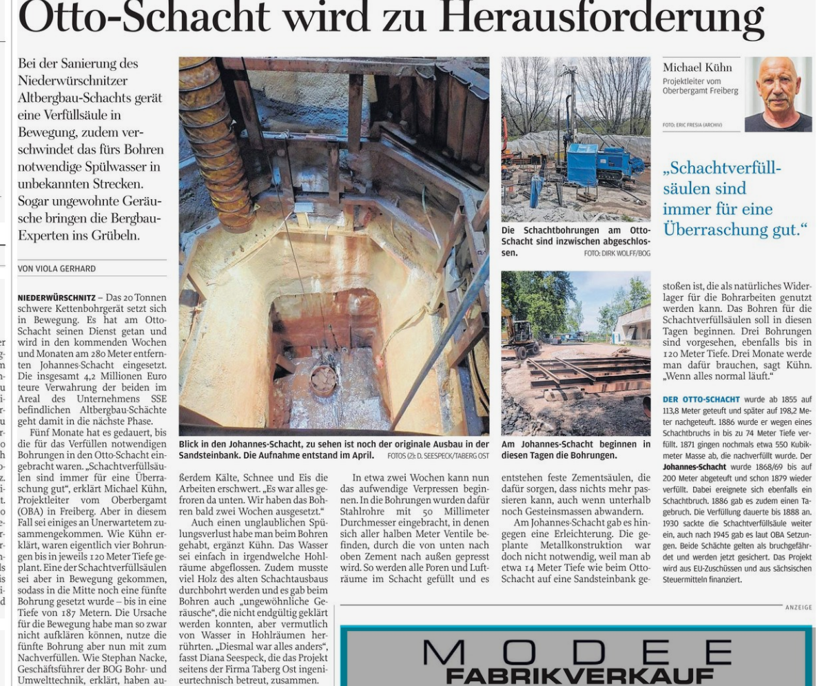 "Bei der Sanierung des Niederwürschnitzer Altbergbau-Schachts gerät eine Verfüllsäule in Bewegung, zudem verschwindet das fürs Bohren notwendige Spülwasser in unbekannten Strecken. Sogar ungewohnte Geräusche bringen die Bergbau-Experten ins Grübeln."
