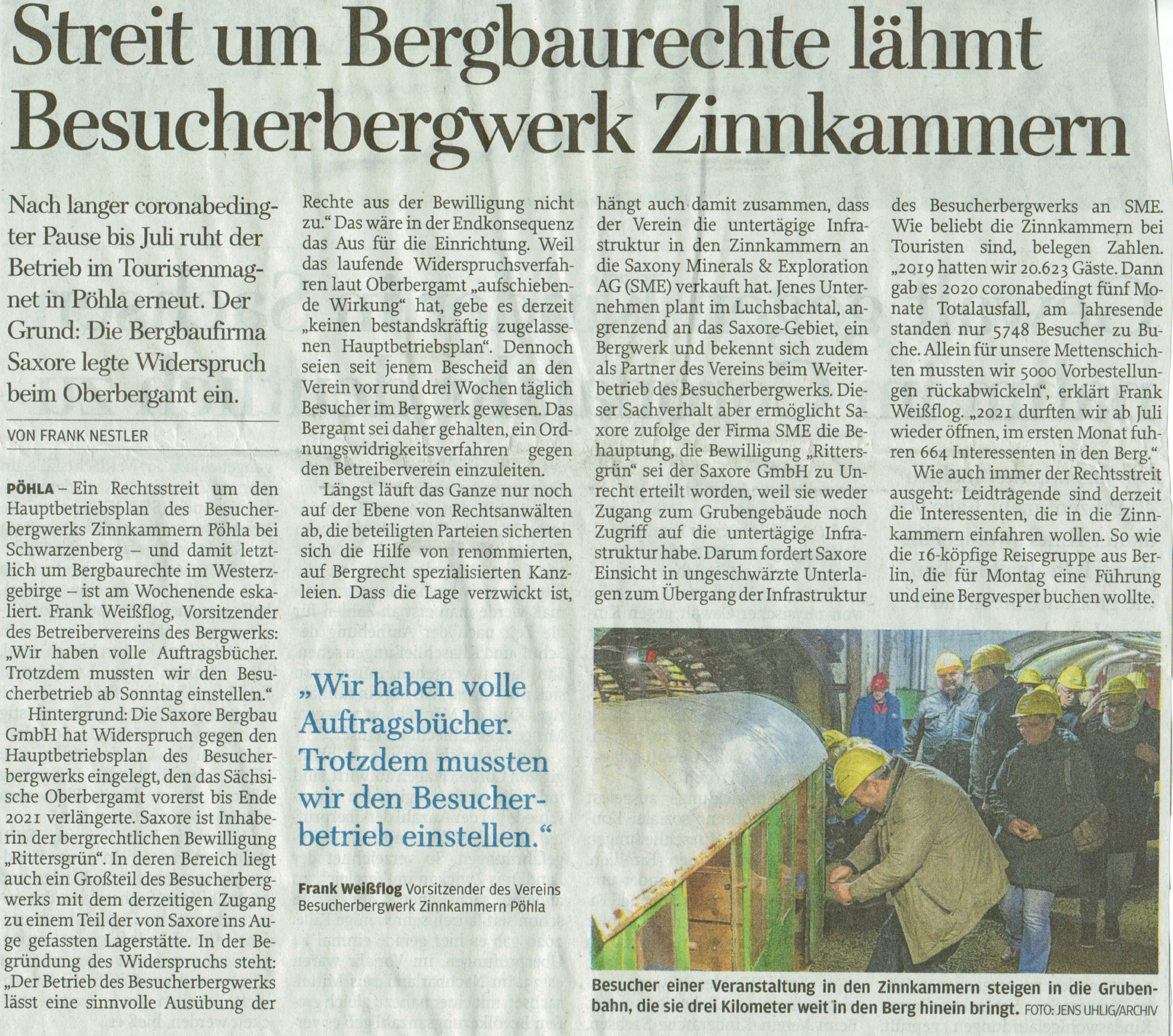 keine Ahnung, was da passiert und was die wirklich vorhaben. Ich würde mich jedenfalls freuen, wenn es klappt und mal wieder Erz im Erzgebirge gefördert wird !