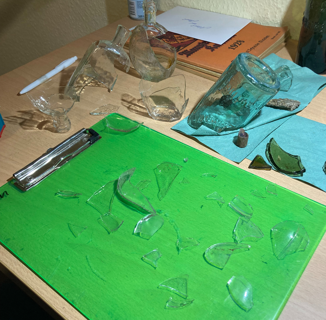 Scherbenhaufen aus einem Freiberger Revier am ende kamen 9 Flaschen daraus