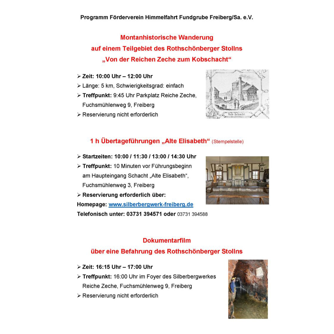 vielen Dank für das teilen des Programms am 24. April um die Reiche Zeche. Leider scheint es ja keine zentrale Stelle zu geben, die alle Termin rund um die 145 Jahrfeier des Rothschönberg Stollns sammelt.