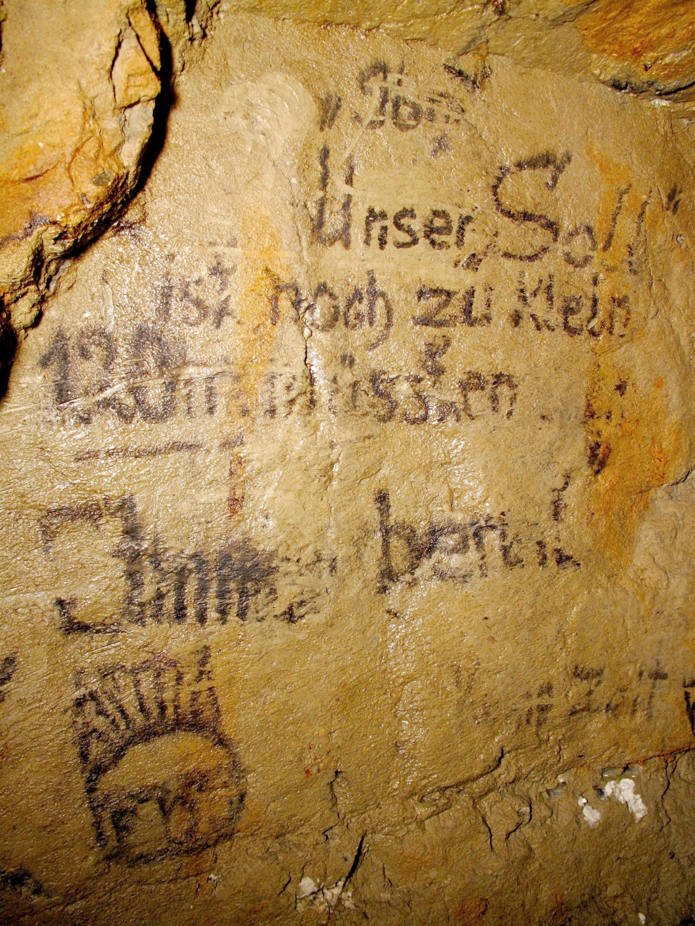 Ein Bergmannsgraffiti aus dem 18. Jahrhundert an einem sehr wichtigen Schacht im Marienberger Revier.