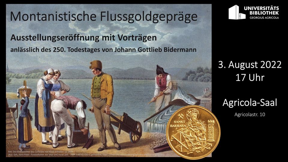 Sächsisches Flussgold und Goldgepräge sowie der 250. Todestag Johann Gottlieb Bidermanns sind Themen der neuen Ausstellung in der (alten) Universitätsbibliothek.