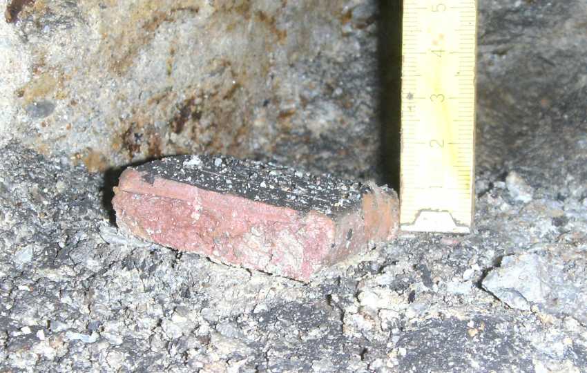 Gebrannt war es auch nicht oder es war ein Material, was wieder weich geworden wäre. Das Ganze scheint ja auch mal länger gewesen zu sein, weil an beiden kurzen Seiten diese Bruchkannten waren, während die Längsseiten unversehrt waren (sieht man auf dem zweiten Bild ganz gut).