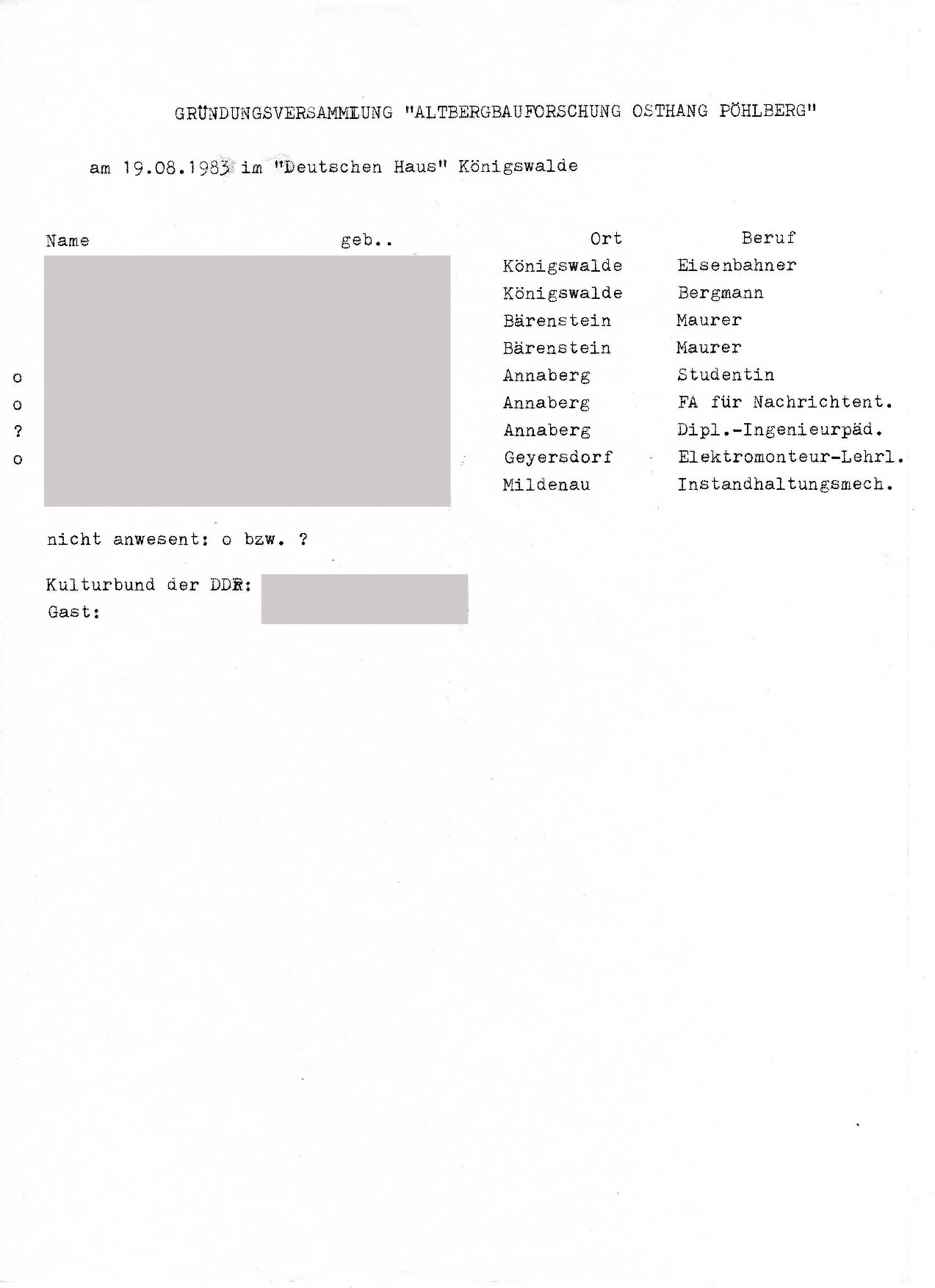 Anhängend ein kleines Programm, sowie ein Teil der Gründungsunterlagen 1983 und ein Auszug aus den Antragsunterlagen der untertägigen Arbeiten von 1985. Viel mehr interessante und teils lustige Zeugnisse und Erinnerungsstücke seht Ihr vor Ort.