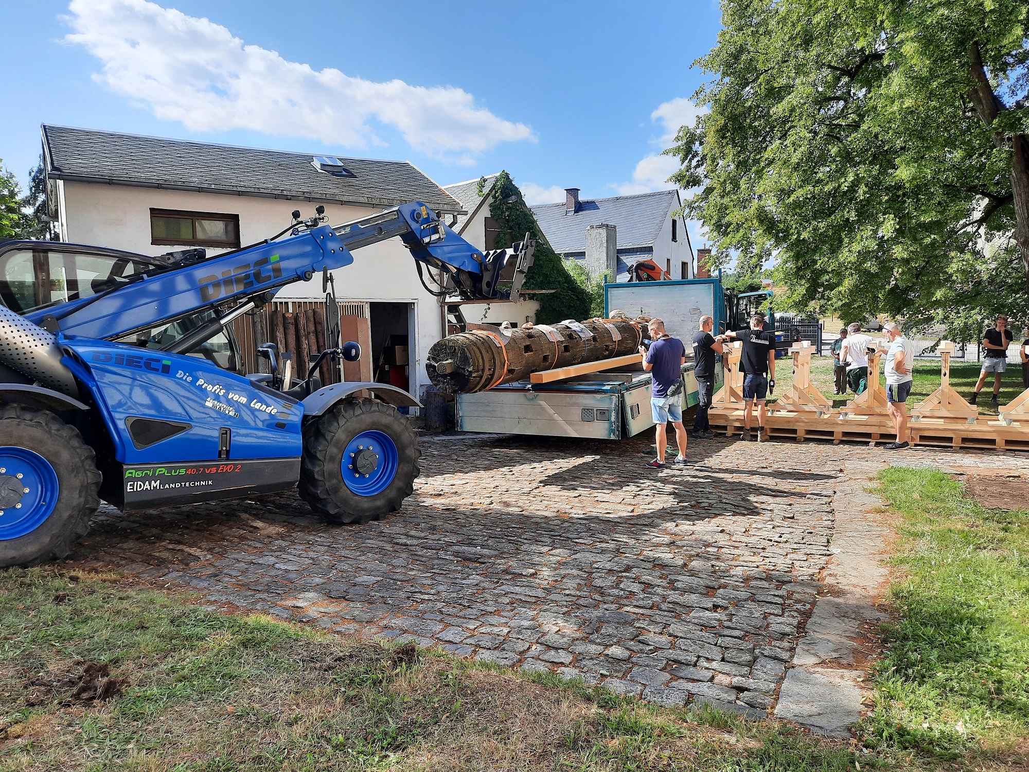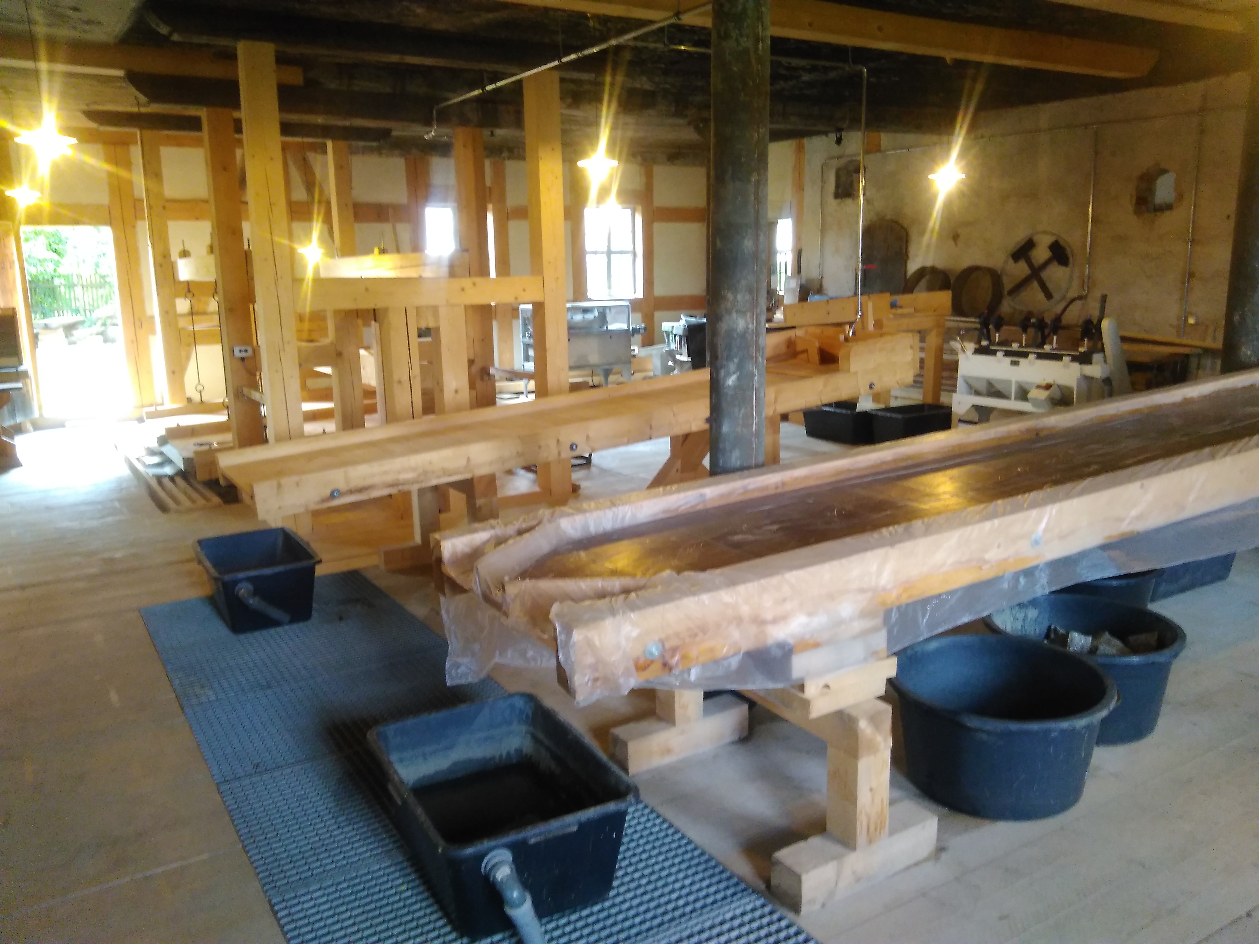Am 17. Juli wurde die Pochwelle in das Pochwerksgebäude gebracht.