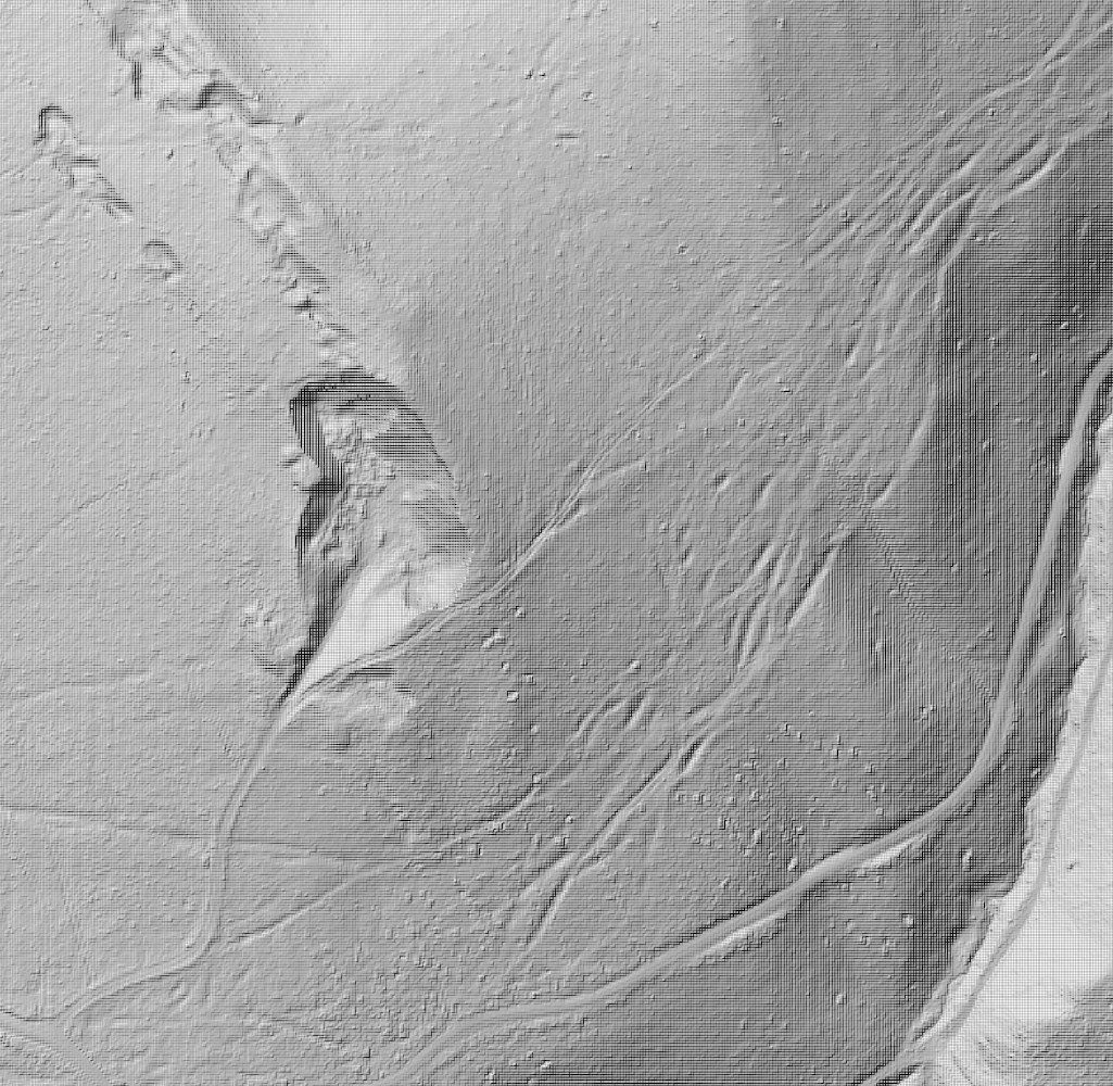 Hier mal als Beispiel eine aus DGM-Daten abgeleitete Reliefkarte eines bekannten Harzer Bergbaureviers. Der hier dargestellte Ausschnitt ist ca. 2km * 1,3km groß. Rechts unten im Bild gab es einen Ausbiss des Erzgangs an die Oberfläche, der mittelalterliche Abbau hat gut erkennbare Pingen hinterlassen. Im weiteren Verlauf des Erzgangs nach links oben sind zahlreiche Lichtlochpingen eines Wasserlösungsstollens sowie Halden zu sehen. Ebenfalls gut zu erkennen sind die Dämme einer typischen Harzer Teichkaskade. Wie man sieht, ist der untere Teich noch in Betrieb, der mittlere Damm wurde abgeworfen und geschlitzt, um weiteren Anstau zu vermeiden. Bei dem Teichdamm oben in der Mitte wurde das Aufschlitzen versäumt, infolgedessen ist er vor einiger Zeit durch Starkregen gebrochen - mehr als 150 Jahre nach der Außerbetriebsetzung. (Wer sich im Harz auskennt, müsste spätestens jetzt wissen, um welches Gebiet es geht?) Quelle der Basisdaten: © GeoBasis-DE/LGLN 2024, Daten geändert bzw. weiterverarbeitet