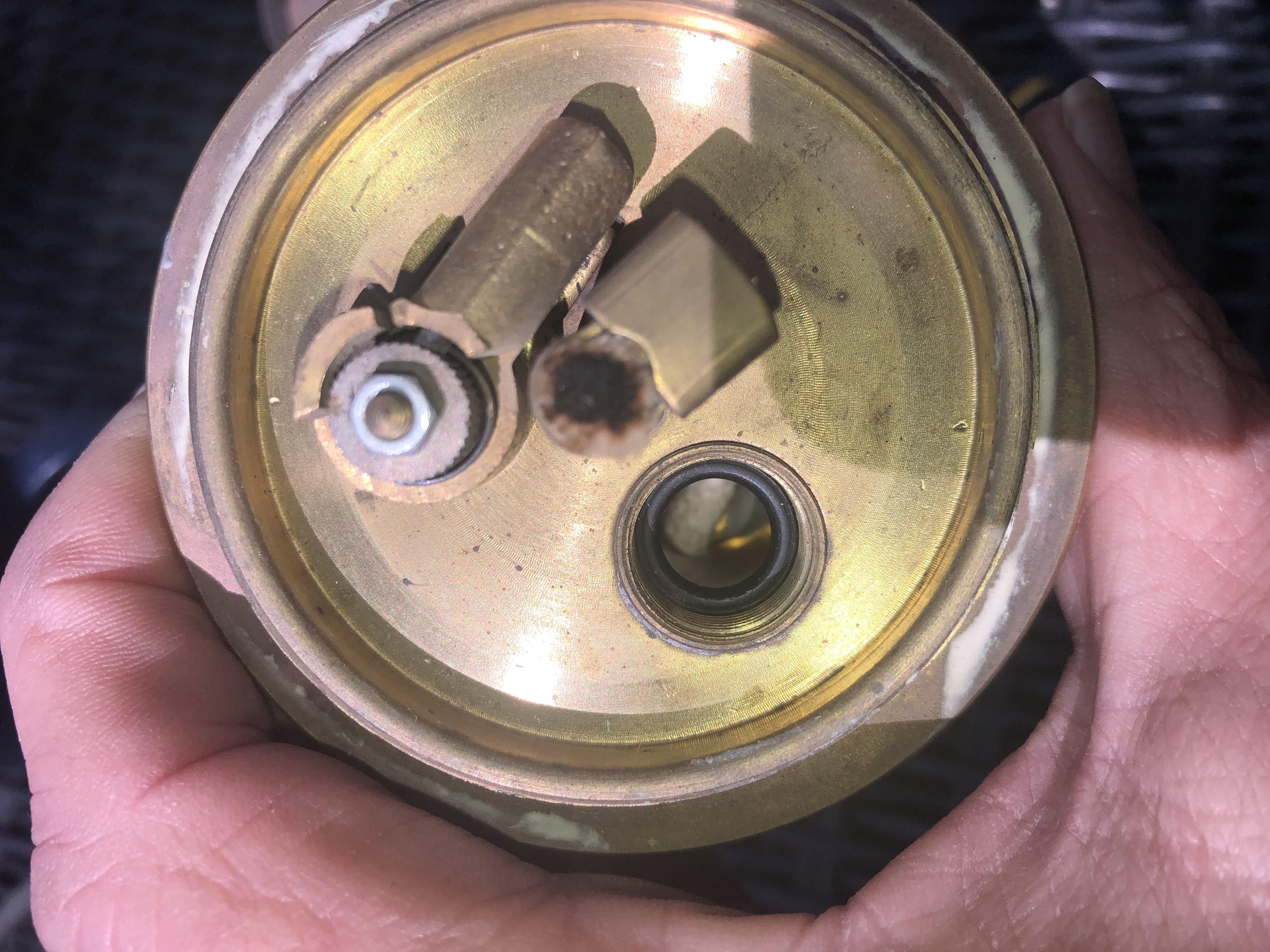 Ich habe eine Friwo 400 die wohl mal restauriert wurde. Mann hatt einen neuen Docht angebracht aber wenn ich im Füll-loch schaue siehe ich nur der Docht aber keine Watte. Feuersteinzündung funktioniert. Die Lampe hat wohl um 1990 als Werbegeschenk gedient.