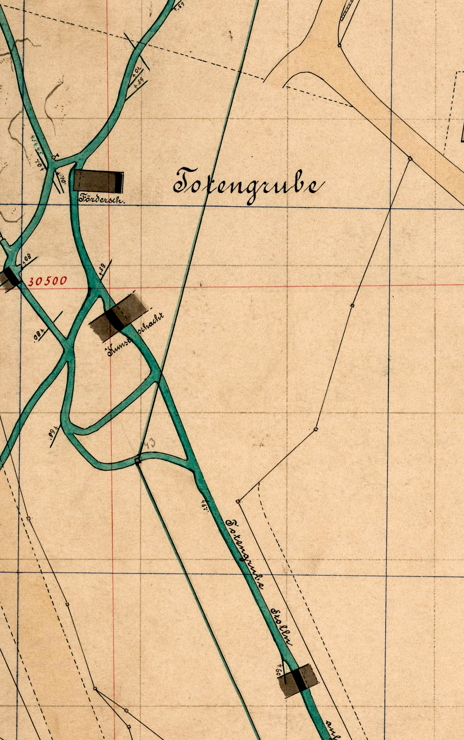 es ist schon seltsam welche Spekulationen über diesen Tagebruch in Zschorlau verbreitet werden. Die Sache ist eigentlich relativ einfach dort existieren 2 Schächte ein Kunstschacht und ein Förderschacht ca 20m auseinender. Der Fürderschacht könnte im oberen Bereich verwahrt wurden sein (Holz oder Bruchstein eher Stein ) .Diese Verwahrung könnte gebrochen sein, das würde das Nachrutschen des Erdreichs volumenmäßig erklären. Ein Stollenbruch könnte das nicht ! Ein Stollen hat eine Größe von ca. 2m Höhe und max 1m Breite und Stollen hat man damals zur Betriebszeit mit Hand Eisen und Schlägel vorgetrieben, dabei entstehen keine Risse ins Nebengestein wie beim Schießen ! Diese alten Stoll mit Hand getrieben, stehen normalerweise ewig. Zur Info noch ein Bildausschnitt einer alten Risskarte. Genaues wird man nach der Aufgewältigung durch die BS erfahren aber dies ist meine Vermutung. Übrigens ist der Name Totengrube nicht der ursprüngliche Name erst seit der Wasserflut wo 9 Bergleute ums Leben kamen wird sie so genannt. Der vorherige Name war vermutlich Gnade und Reich Gottes Fdgr (Quelle Stecher Chronik).Für Berichtigung bin ich dankbar die Angaben sind spärlich. Es soll mit die älteste Grube im Schneeberger Revier sein bekannt seit 1440 ? Das tiefste Ort des Kunstschachtes (über 100m) ist schon zu Betriebszeiten abgesoffen und konnte nie wieder aufgewältigt werden.Der Kunstschacht ist übrigens schon vor Jahren nachgebrochen eine Umzäunung mit Stacheldraht und das wars. Archäologisch wäre die Grube höchstinteressant
