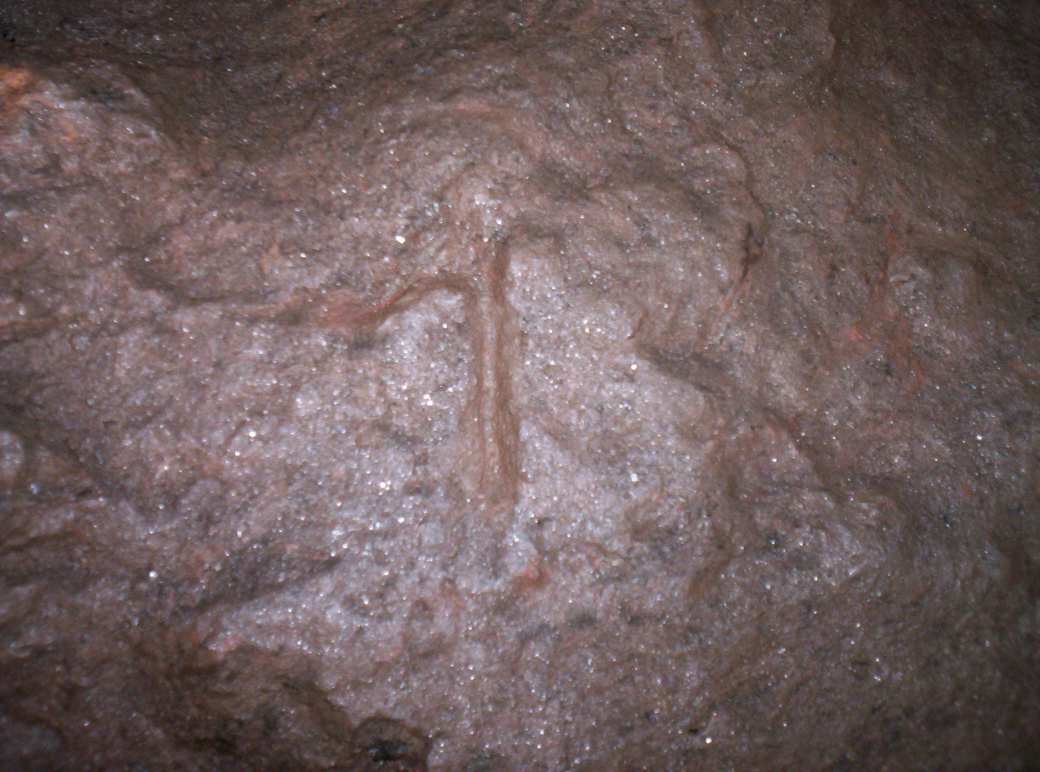 Natürlich kann es ebenso auch von irgendwelchen Befahrern zur Markierung, Veräppelung von Montanhistorikern, um sich die Hände abzuwischen etc. angebracht worden sein. Allerdings müsste man sich die Mühe machen und aus den Limonitletten eine entsprechende (Mineral-) Farbe anrühren