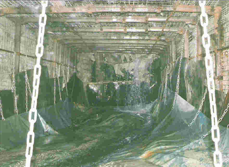Die Wassereinbruchsstellen waren recht bröselig, weshalb man sie mit Rundbogenausbau oder - wie hier zu sehen - mit einem stählern Türstock versehen hat.