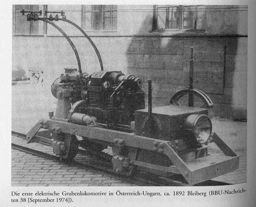 später wurde in Bleiberg wahrscheinlich die erste elektrische Grubenbahn in der