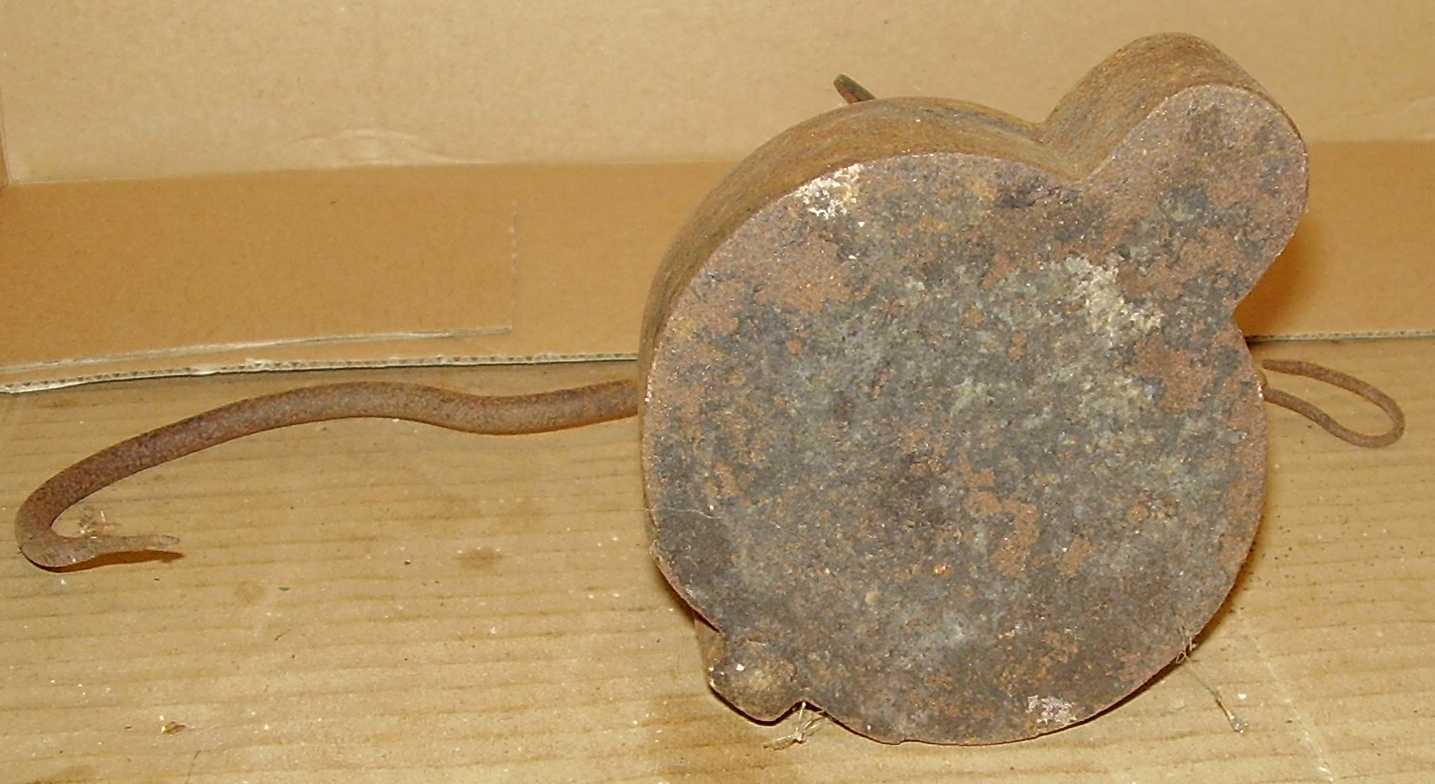 Ansonsten ist er gut erhalten, ob die Kette original ist oder mal getauscht wurde, entzieht sich meiner Kenntnis, paßt aber aufgrund der Patina zum Rest. Der Stocher war wie ein U verbogen, den habe ich ganz sachte gerichtet. Vorsichtig gereinigt und das Messingschild vom Grünspan befreit und so bleibt er.