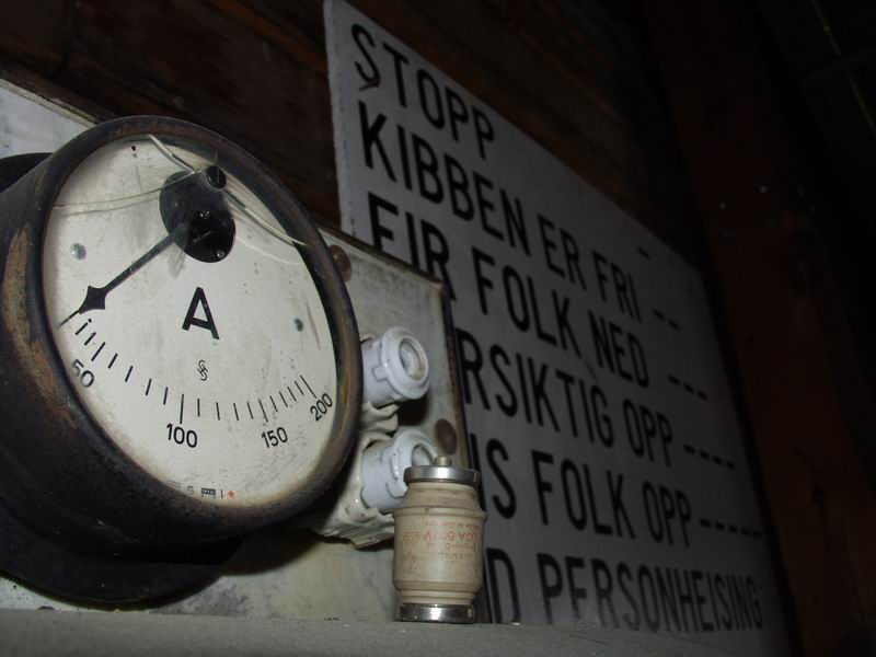 Amperemeter und Signaltafel im Fördermaschinenraum.