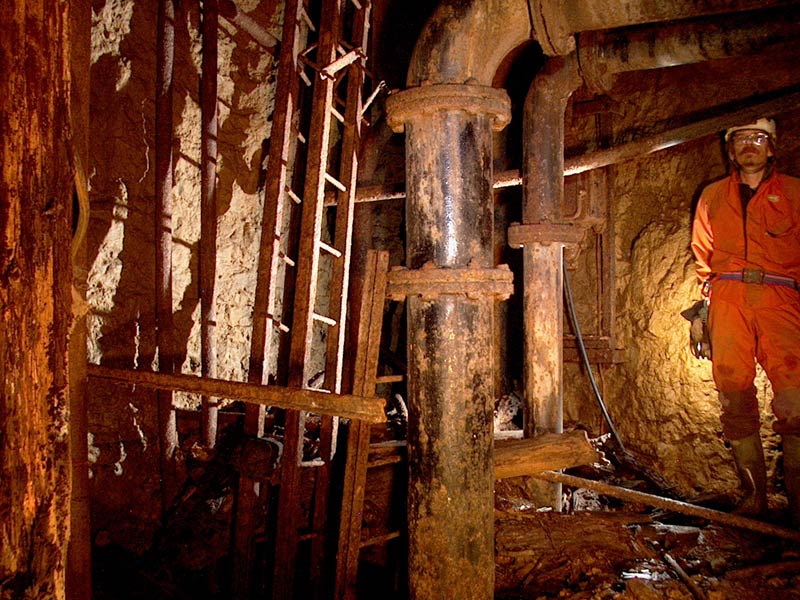 Pumpenleitungen eines Wasserhaltungsschachts in Thüringen