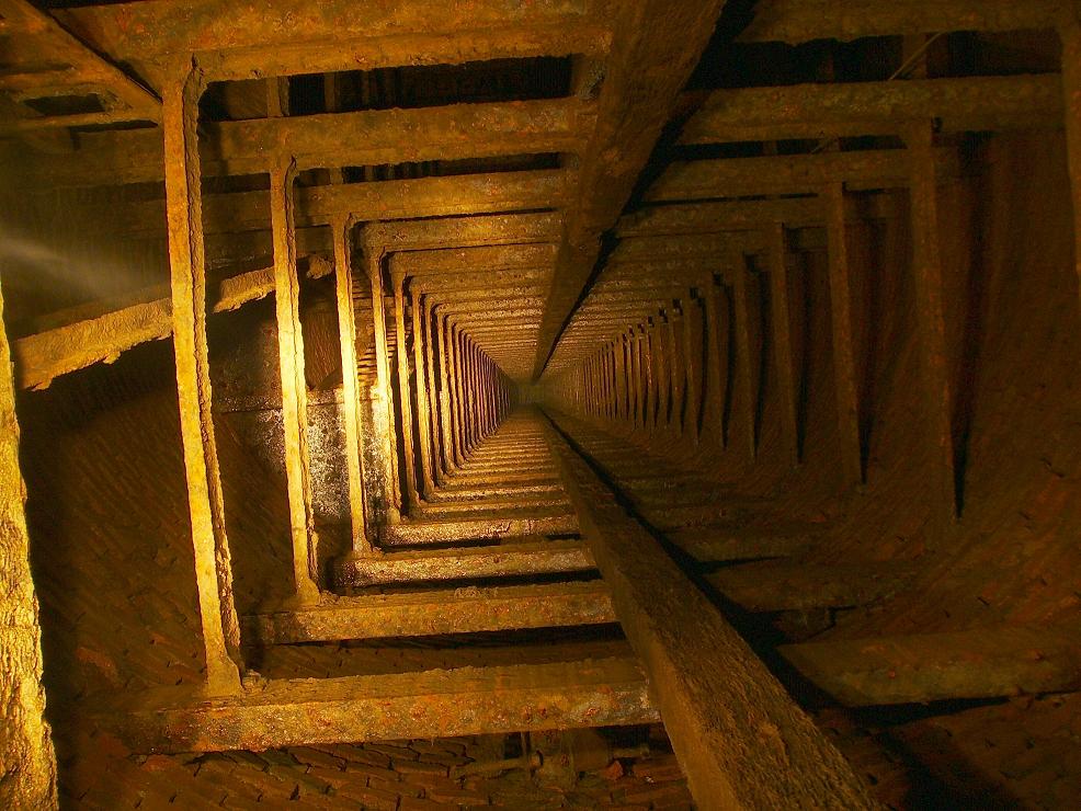 Abgebauter Kupfererzgang der Altvorderen mit Orginalzimmerung aus dem 18. bis 19. Jahrhundert. Die heutige Höhe (ab dem darunter liegenden Versatz) beträgt ca. 12-15 Meter. Beginn des Bergbaus wahrscheinlich am Ende des 15. Jahrhunderts.