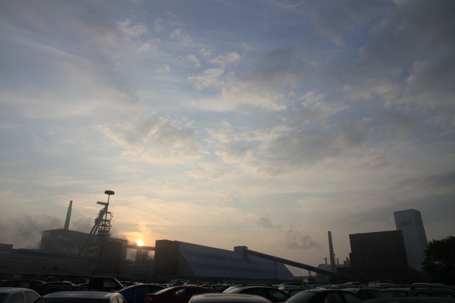 Zielitz 08. Juni 2010 morgens 4:53Uhr auf den Autos der Nachtschicht ist Eis, eine Stunde vor der Seilfahrt von Korb Nr.2 (weiß)