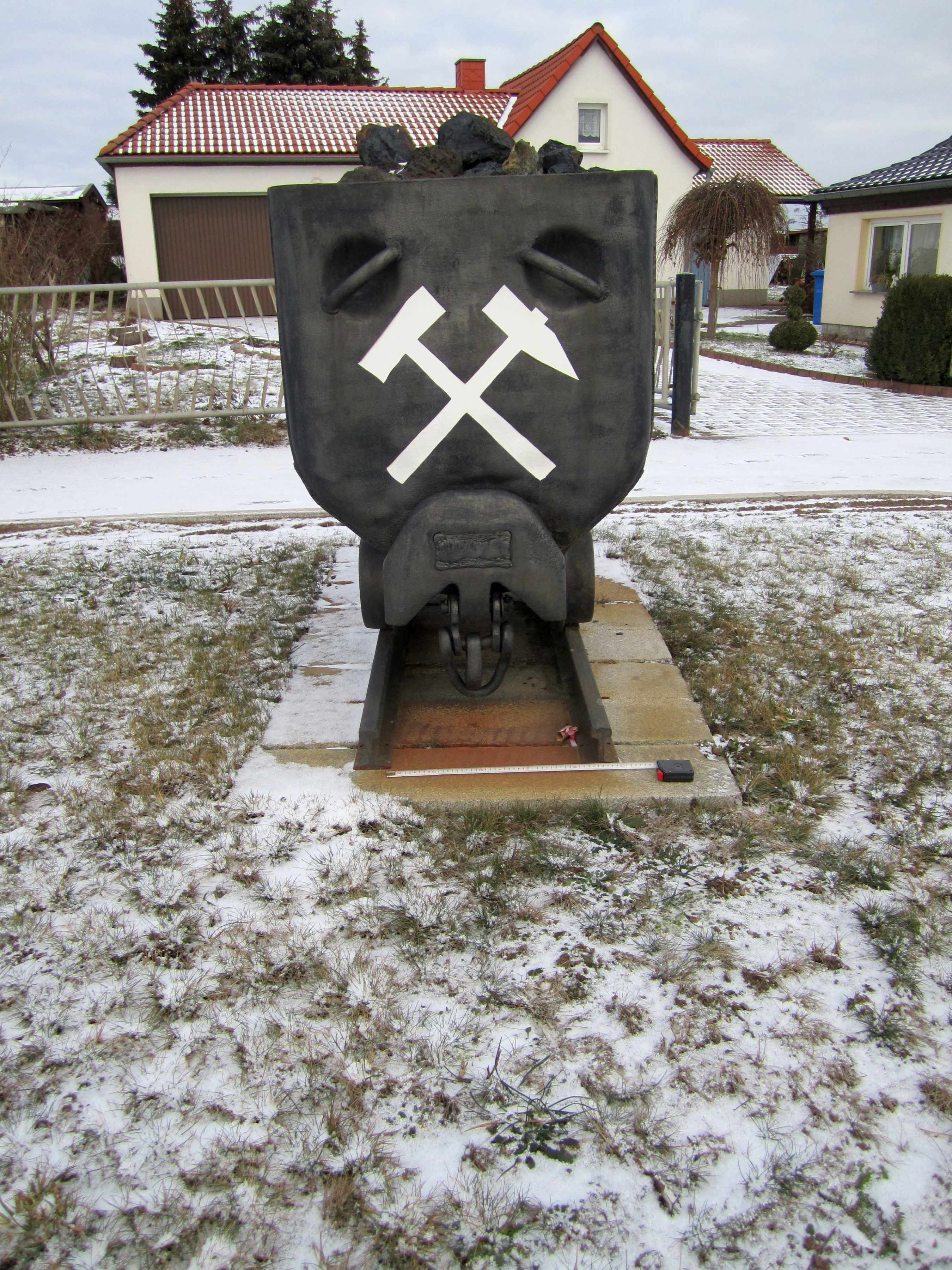 Heute war ich nochmal ein paar Fotos schießen. In der Siedlung in Mülsen St. Jacob steht ein weiterer originaler Hunt (Nr. 8350), der aber nicht umgespurt wurde. Etwas kurios, da die Nähe zum Martin-Hoop-Werk gegeben ist (zwischen den Schächten 4/4a, 5 und 9), der Hunt aber mit 450 mm Spurweite vom Karl-Marx-Werk zu stammen scheint, während die oben beschriebenen Hunte im Stadtgebiet näher am Karl-Marx-Werk sind und vom Martin Hoop stammen.