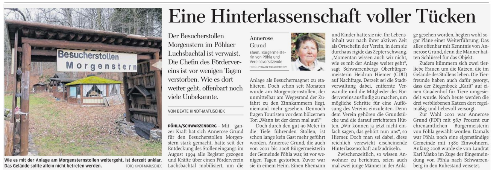 Ich kenne den Morgenstern Erdstolln (so wurde er mir mal von einer Führerin bei einer Befahrung dort erläutert..., logisch, weil er ja in die Erde geht...