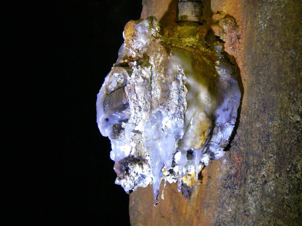 Ich hatte letzten Sonntag einen Vortrag von Ingo Dorsten zum "Herbstlabyrinth" in Breitscheid gesehen/gehört. Darin ging es u. a. um sogenannte "Pool Fingers", meist an Sinterbecken hängende Bakterien, die wiederum auch Ausgangspunkt für die Entstehung von bestimmten Sinterformen sind. Meist findet man nur die versinterten Reste, in Breitscheid gibt es aber noch "lebende" Kulturen. Da sind wohl extra aus Amiland welche gekommen, um Proben zu nehmen.