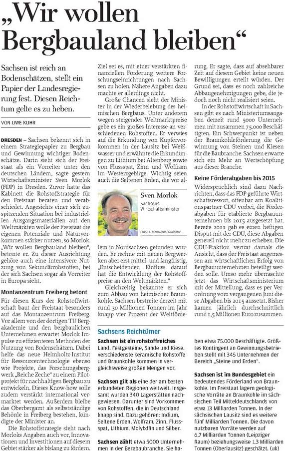 Die DRAG hat ihren Ausblick fuer 2013 vorgelegt. Fuer Storckwitz wartet man noch auf den Gutachterbericht. Die Tin International Ltd (Gottesberg und Geyer) verschiebt ihren Boersengang an der australischen Boerse. Derzeit stehen dem Unternehmen noch 3 Mio AUD an Mitteln zur Verfuegung.