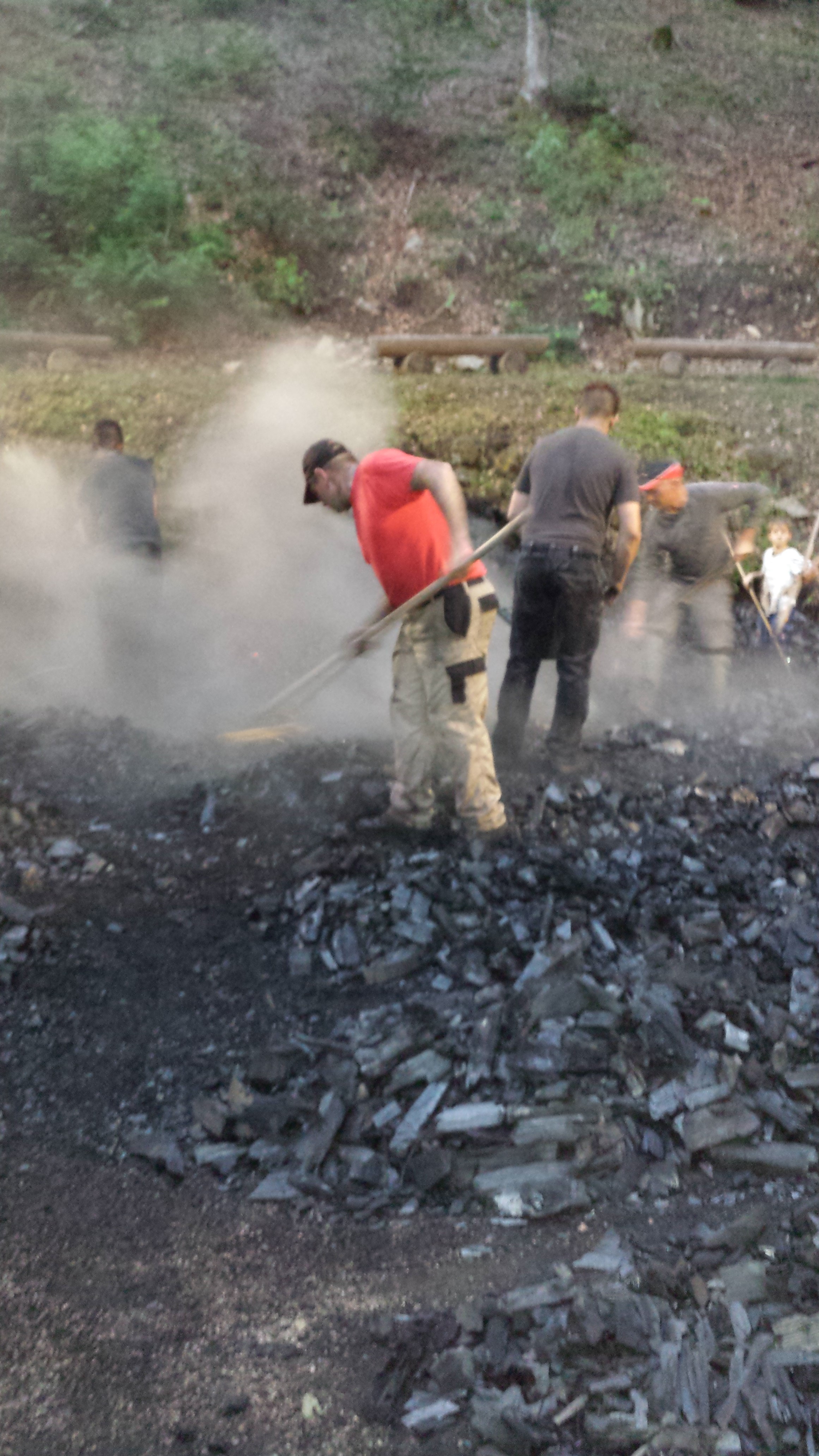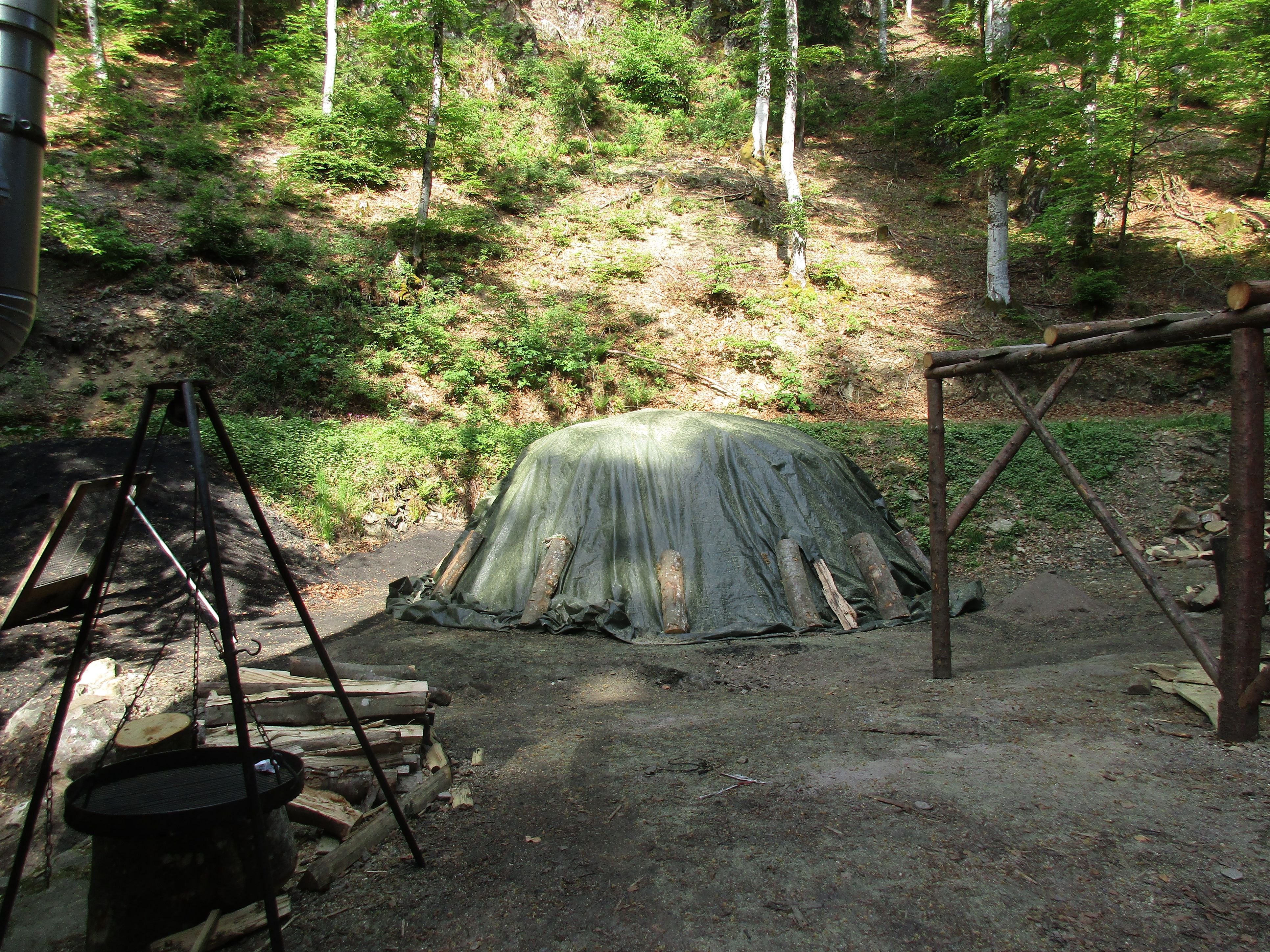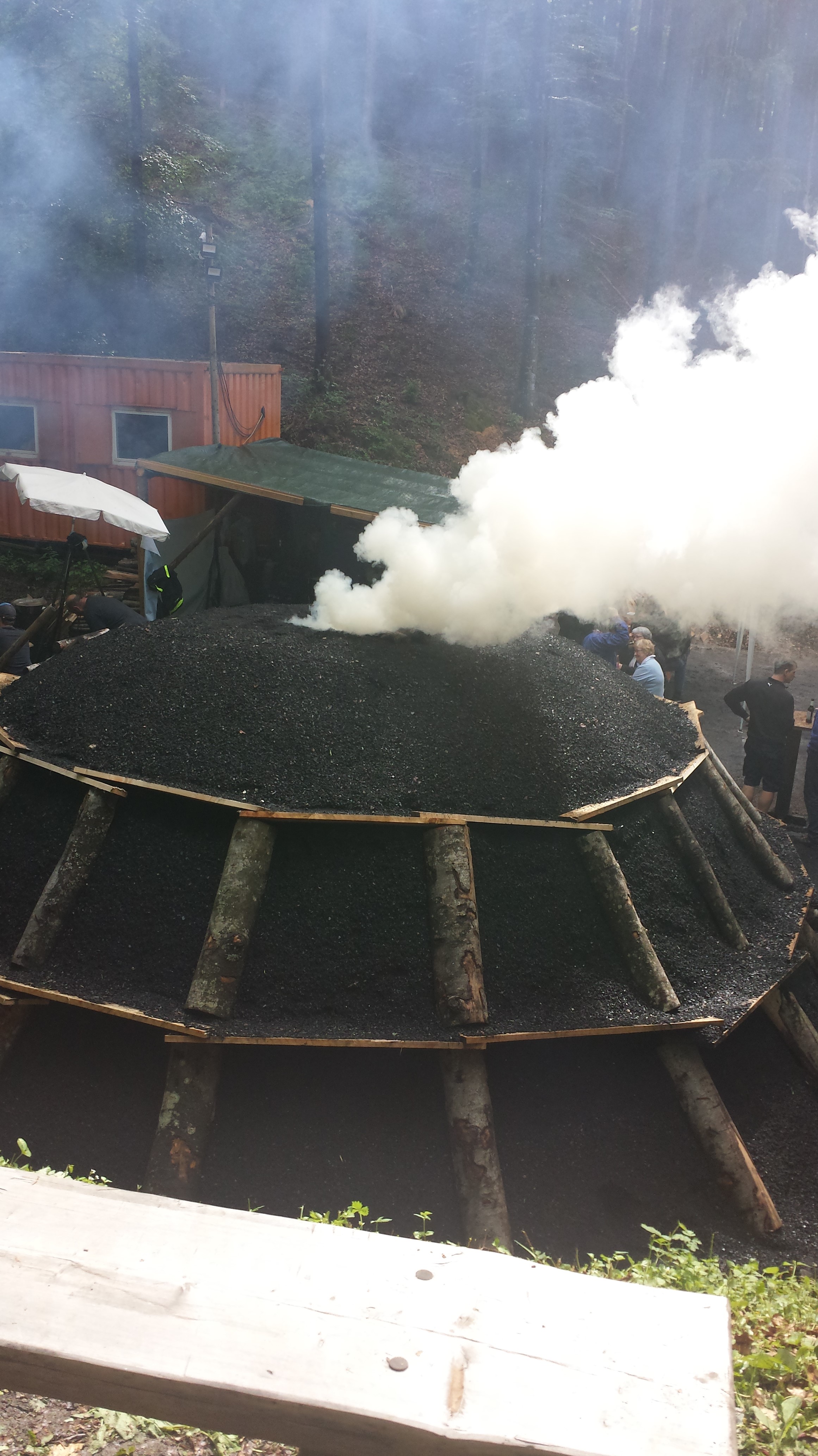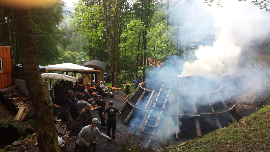 Am 19 Mai 2018 um 14.00 Uhr wird am Bergwerk der Kohlenmeiler wieder in Glut gesetzt. Noch ist er abgedeckt!