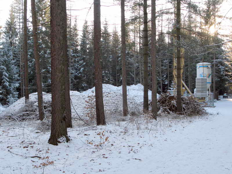 Die Baustelle in Frohnau am Parkplatz = Silbermühlenstollen