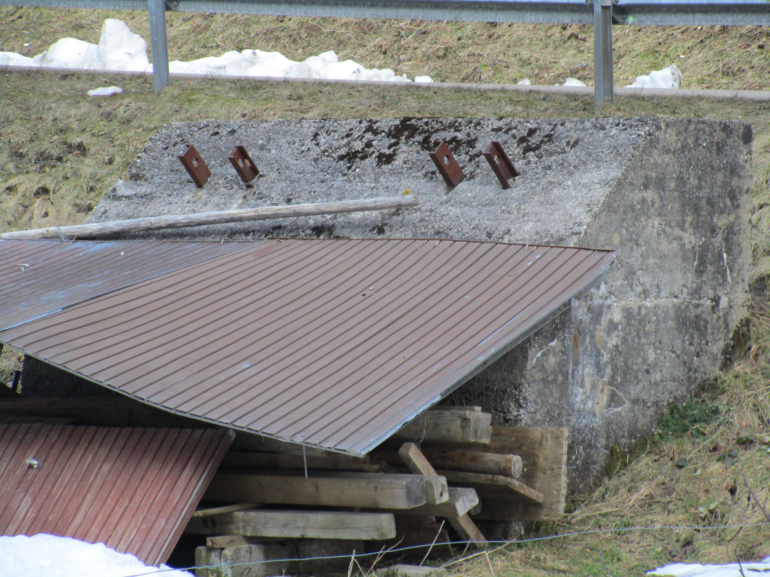 Zwischen Werkstatt und Seilbahnstation befand sich der ehemalige Förderstollen und man sieht nichts mehr davon. Hier baute die Gewerkschaft Finstergrund auf dem Antongang. Es besteht kein Zugang mehr auf den Antongang, auch die letzte Möglichkeit wurde zu nichte gemacht.