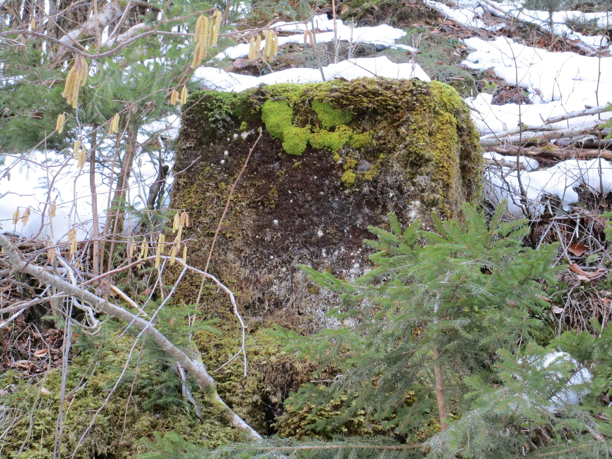 Reste der Betonrampe, von hier aus wurde später der Flussspat mit LKW verladen. Es ist der Punkt 8 auf dem Bergbaupfad.