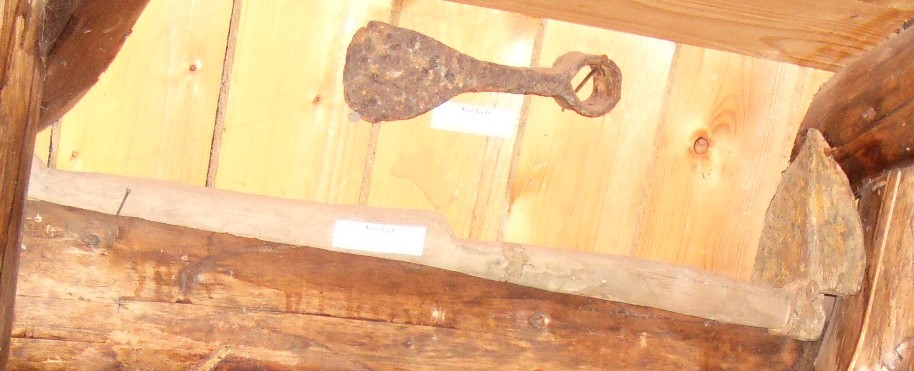 Nämlich Rostspuren oder die genaue Anpassung und ein Keil im Stielende, weil hauptsächlich auf Zug belastet wurde.