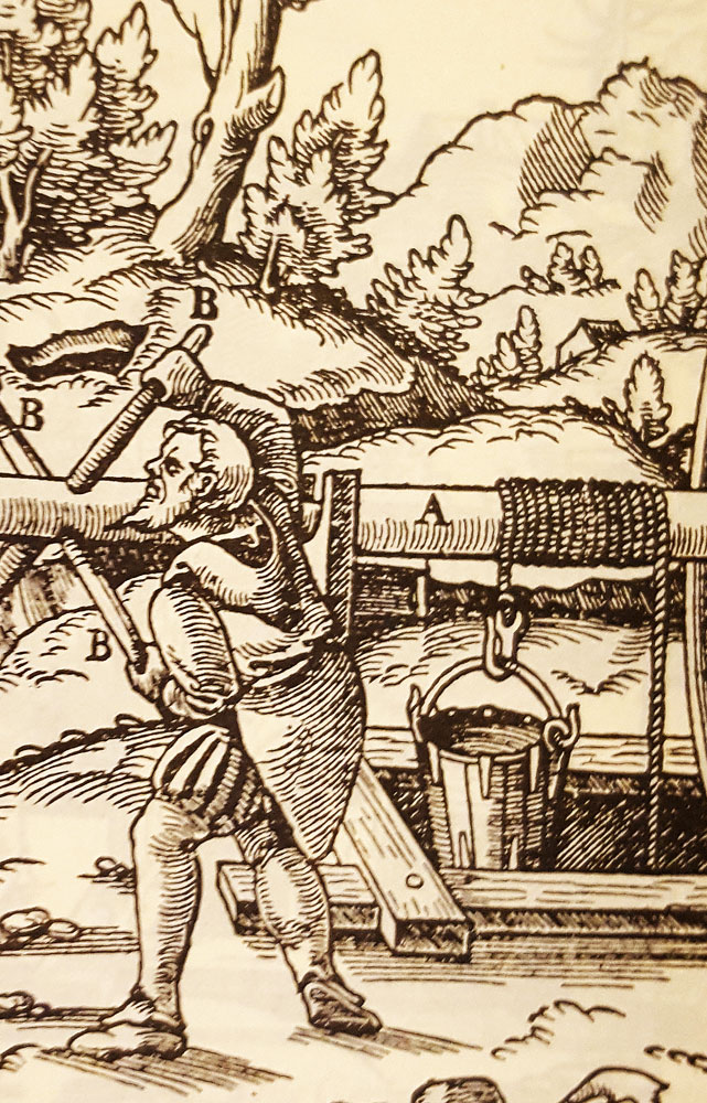 ich würde eine Pumpe grundsätzlich nicht ausschließen! An der betreffenden Stelle ist aber kaum Platz um dem Schwengel einigen Spielraum zu ermöglichen. Deshalb meine Vermutung, dass es sich eher um eine Haspel gehandelt haben sollte.