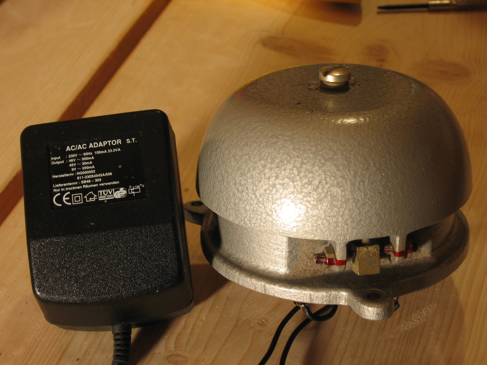 normale Telefonbimmel, kann aber sein das der 50Hz zu schnell sind. Beim manuellen Polwechsel mit Gleichstrom sollte der Klöppel aber umschlagen.