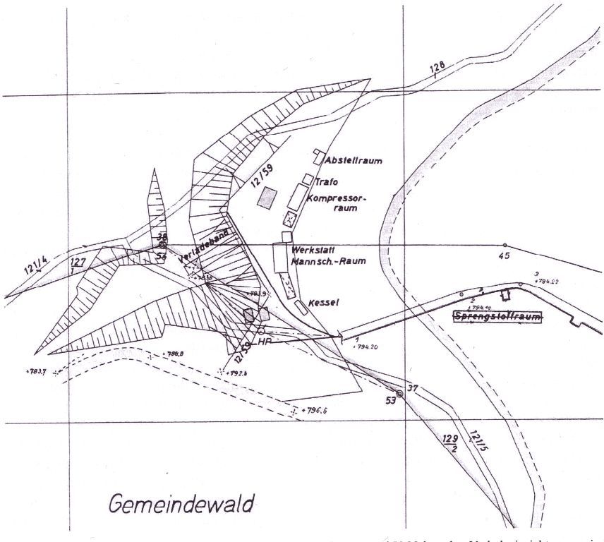 Diese Nische war zu Beginn der Auffahrung des Stollens 5, dass Sprengmittellager.