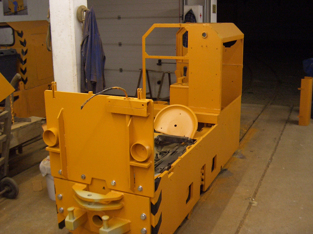 Diese wurde vorübergehend in unserem Lokschuppen abgestellt. Die GrubenlokB360 war fabrikneu und somit beim eintreffen im Schwarzwald noch nie im Einsatz. Leider war auch kein Akkumulatorensatz mit dabei.