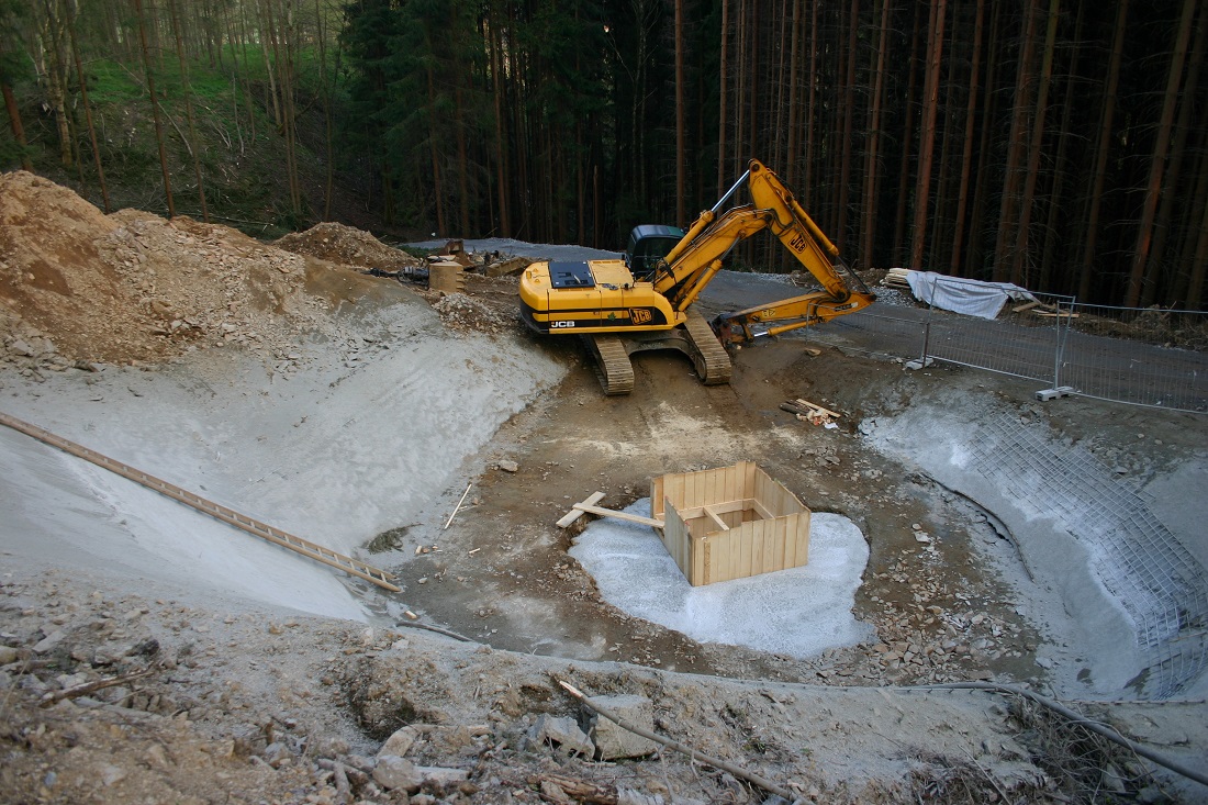 Sanierung eines Wismut-Schurfes im Raum Annaberg/Marienberg als Teil eines 27 Schadstellen umfassenden Sanierungsprogramms (18 Wismut, 9 Altbergbau), hier Ende 2015.