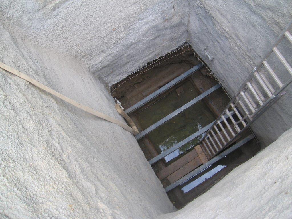 Das ist der Schurf 60. Rasenhängebank 187,02 m NN, Teufe 44,80 m. Hier wurden im Füllort nach der Weißeritzflut im Juli 1954 unbrauchbar gewordene Medikamente und Pflanzenschutzmittel eingelagert. Das Revier Heidenschanze war damals wasserfrei und blieb es bis zur Einstellung des Bergbaues in Gittersee 1989. Man ging damals davon aus, dass das Revier links der Weißeritz bei einer Flutung der Grube automatisch über den Tiefen Elbstolln entwässert. Allerdings waren die beiden Strecken, die durch den Sicherheitspfeiler der Weißeritz führten, die zwar abgemauert waren, aber über Rohrdurchlässe verfügten, 1989 nicht mehr zugängig. Damit bestand die Gefahr, das mit der Flutung der Grube der Füllort des Schachtes überflutet wird, was dann ja auch geschah. Erst mit der Anbindung des Revieres links der Weißeritz an den Tiefen Elbstolln im Juli 2014 ist das Revier bis in eine Teufe von 120 m NN wasserfrei. Kompliziert war die Aufwältigung des Schurfes dadurch, das der Schachtpunkt ca. 10 m hoch mit Kraftwerksasche überdeckt war. Das ehemalige Revier Heidenschanze wurde nach der Einstellung des Bergbaues als Mülldeponie genutzt. Später wurde die Deponie mit Kraftwerksasche überdeckt. Brimborium war da eigentlich nicht dabei. Ironie der Geschichte. Im August 2002 verwüstete erneut eine Weißeritzflut Freital und Dresden.