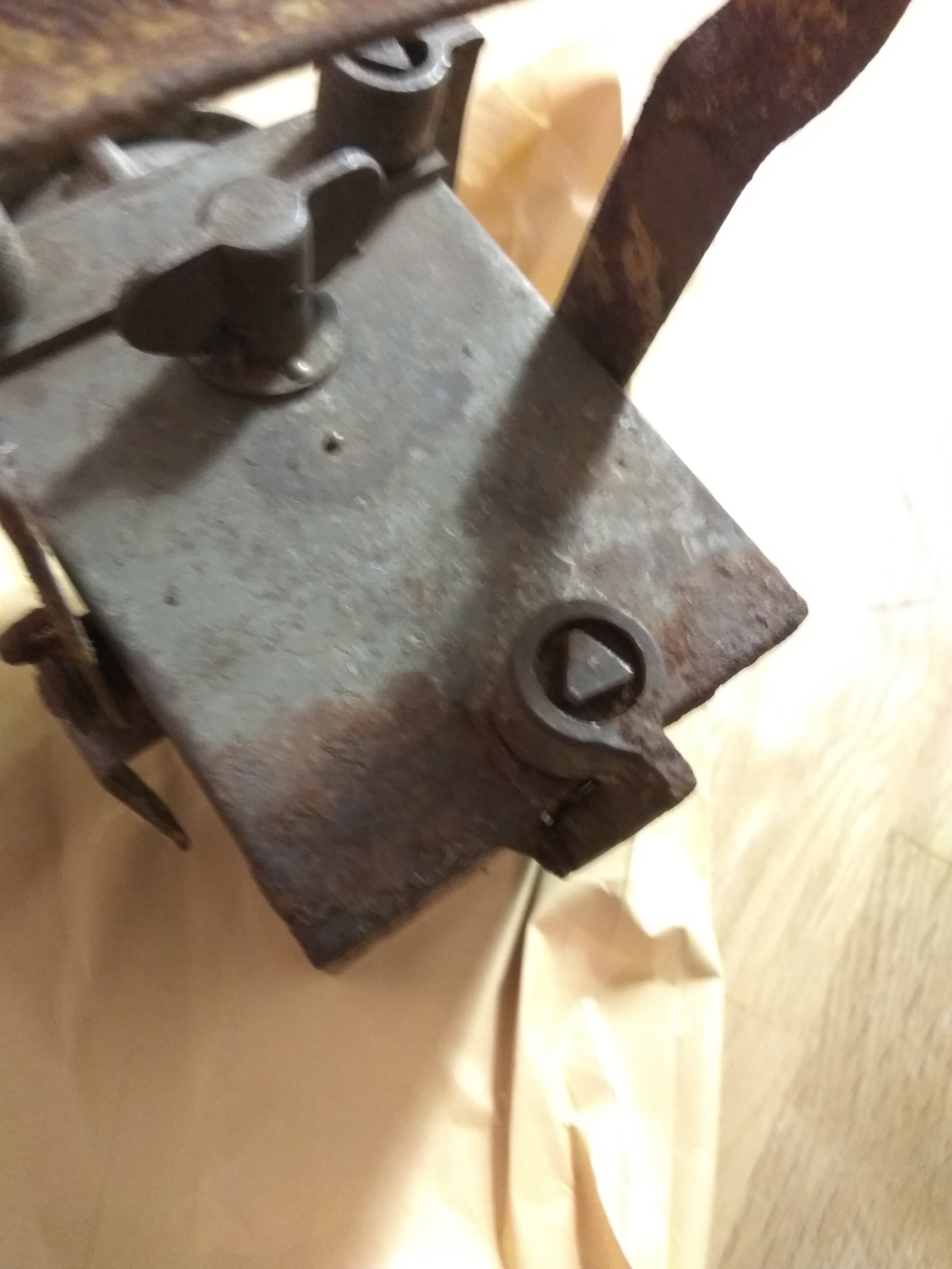 Die Art der "Anrostung" deutet auf ausgelaufenen Laugenakku hin....Aufmachen raus damit, alles sauber machen, groben losen Rost mit weicher Drahtbürste entfernen , dann mit Rostumwandler einlassen ( ja nicht sandstrahlen).
