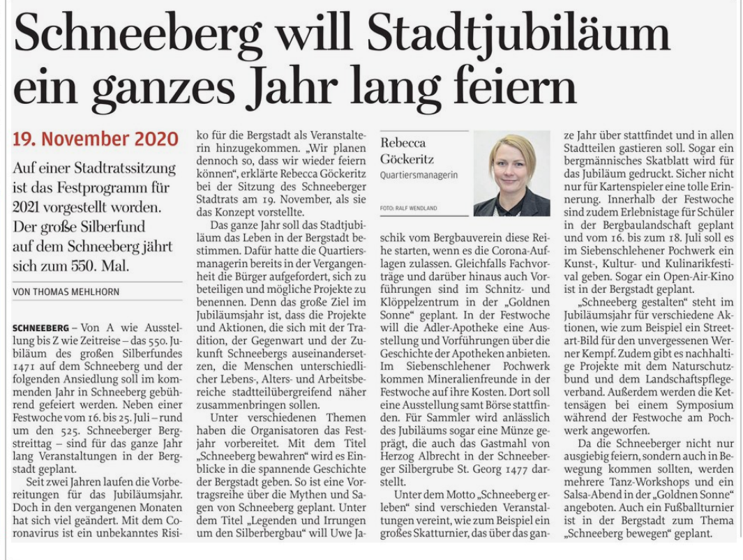 Schneeberg hat im laufenden Jahr was zu feiern, wenns denn möglich sein kann..