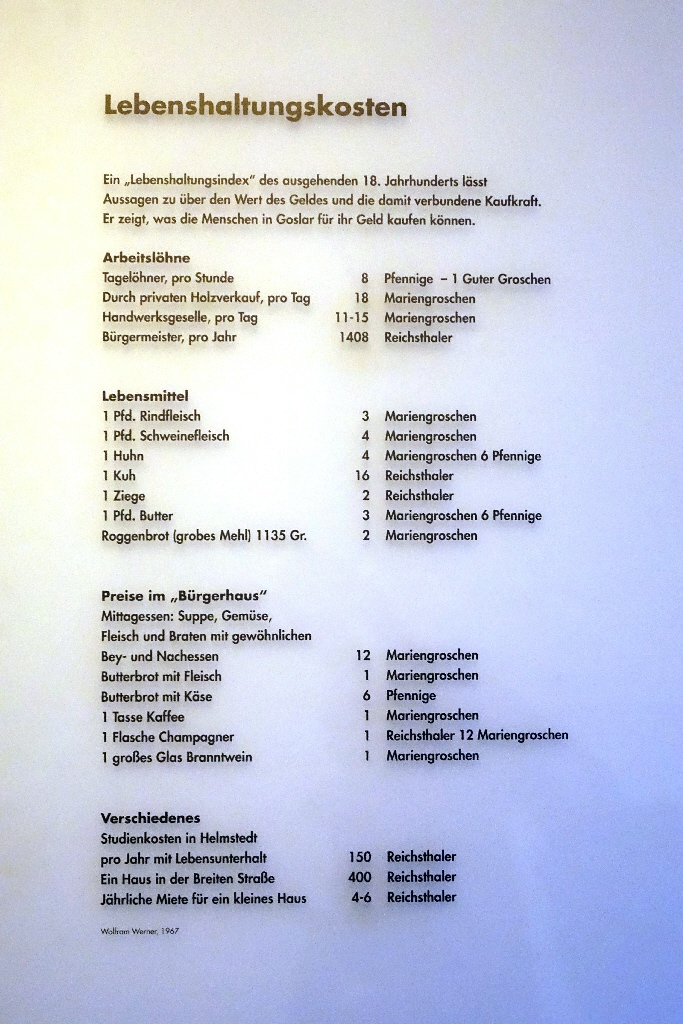 anbei Lebenshaltungskosten des ausgehenden 18. Jahrhunderts und der "Stellenplan" vom Rammelsberg von 1837. Beides im tollen Museum vom Rammelsberg zu sehen.