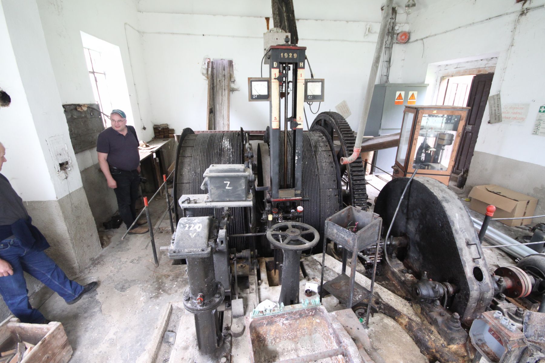 Bobinen-Fördermaschine auf Schacht W des Schafbreiter Reviers in Wimmelburg bei Eisleben. Ursprünglich für Dampfbetrieb 1858 von der Fa. Borsig, Berlin gebaut und dann 1904 auf elektrischen Betrieb umgestellt; heute noch voll funktionsfähig und genutzt. Dem Grunde nach diente die Maschine aber nicht zur Förderung, sondern zur Fahrung für Maschinisten zur Wartung einer untertägigen Dampfmaschine in den Wimmelburger Schlotten. Der Förderkorb war ursprünglich und ist heute noch für zwei Personen ausgelegt.