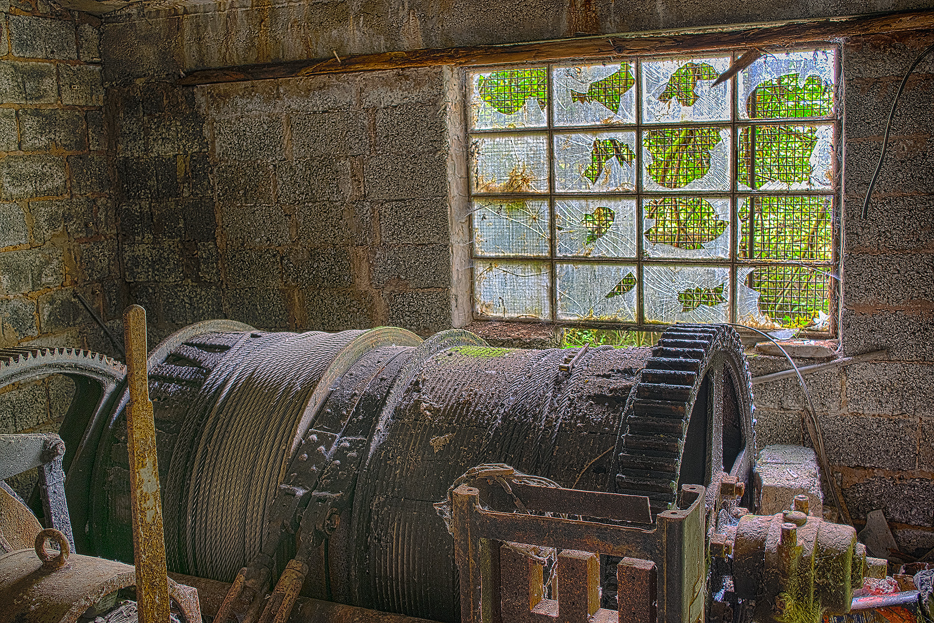 Sie wird Gästen am Goslarer Rammelsberg nur sehr selten gezeigt: Fördermaschine von 1946 am Richtschacht / Niveau Oberer Hängebankstollen; mit exquisitem Rost- und Myzelbefall (Bild von 2013)