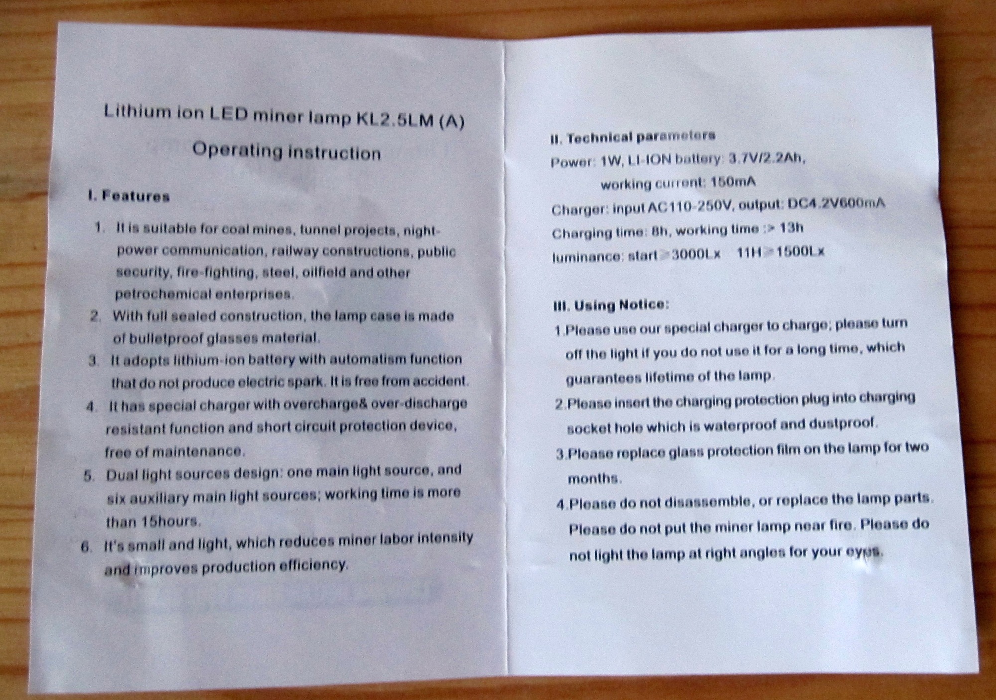 Wir haben von diesen China Leuchten ca. 35 Stück im Einsatz (Führungsbetrieb Besucherbergwerk), bis jetzt ist noch keine Lampe ausgefallen, lediglich 2 Ladegeräte sind defekt. Es gibt verschiedene Lampen dieser chinesischen Händler, wir haben auch ähnliche Lampen mit 2 Leuchtstufen sind 3-5 € teurer bestellen aber jetzt nur noch diese mit 2 Stufen, Befahrungen bis 8 Stunden sind mit diesen Lampen kein Problem. Man kann leider immer nur eine Lampe bestellen, wegen Zollbestimmung