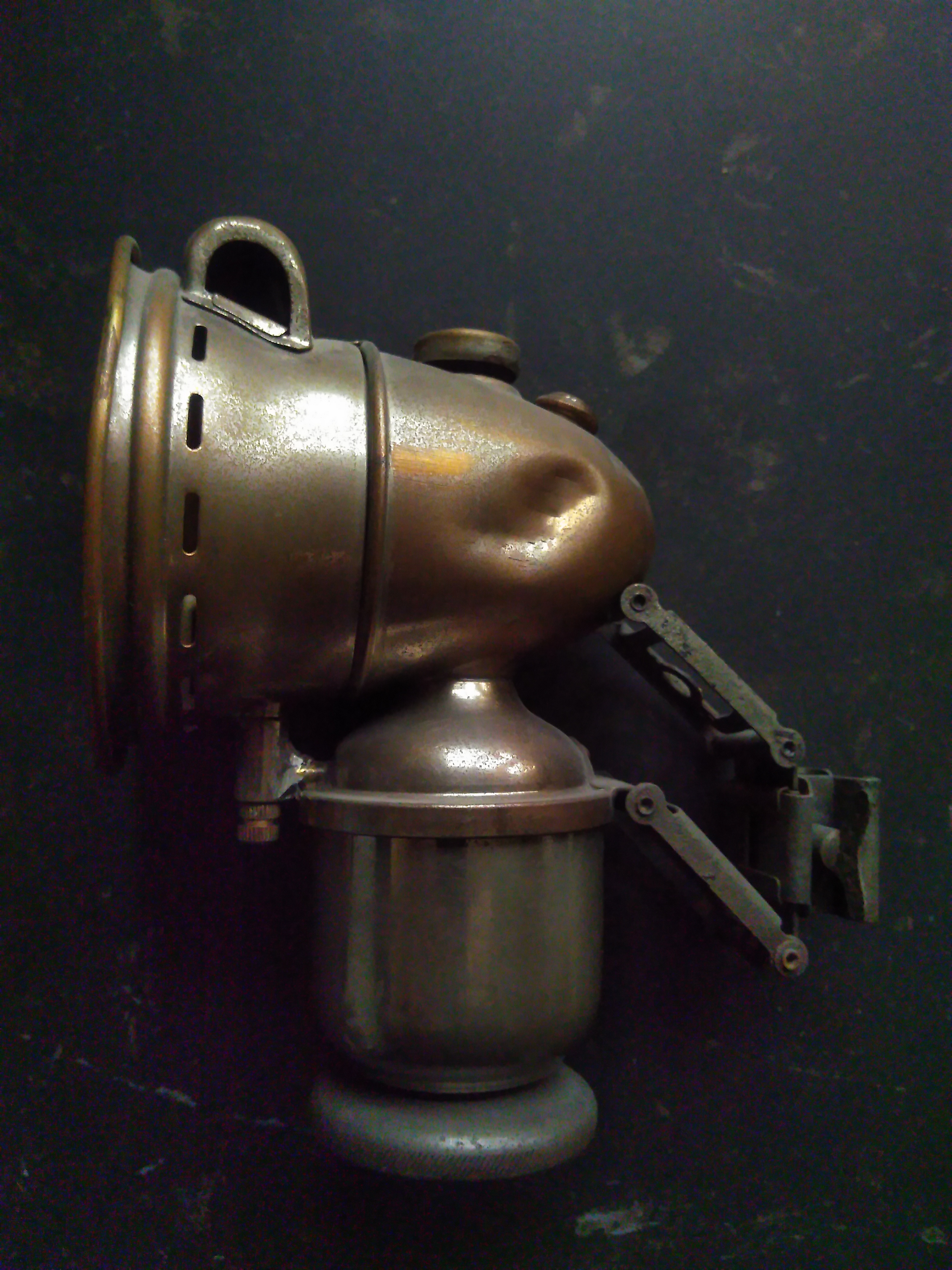 Das andere ist eine Karbid-Fahradlampe. Das sient man auch an der Federung , die die Stöße bei Fahren abfedern sollte. Habe irgendwo auch noch so ein Ding rumliegen.