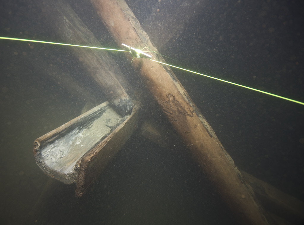 Eine der Gruben ist kurz vor 1800 auflässig geworden und nie wieder gesümpft worden. Darin habe ich Bohrspuren gefunden, aber auch reichlich Ausbau mit vielen Rinnen und Pumpenrohrteilen sowie einem Pumpenkolben. Die Grube litt immer unter zusitzendem Wasser. Es gab eine Wasserkunst mit großem Gestänge und einem Pumpenschacht. Letztlich erlosch die Grube durch einen Gebirgsschlag, die beiden angelegten Bergleute konnten sich gerade noch retten. Es handelt sich also um eine Art Zeitkapsel, in der ich bereits mit viel Glück im Schlamm eine Keilhaue, Schlegel und Eisen sowie mehrere Bohrmeißel gefunden habe. Das meiste davon verbleibt unter Wasser. Da ist es vorerst am sichersten vor gierigen Sammlern.